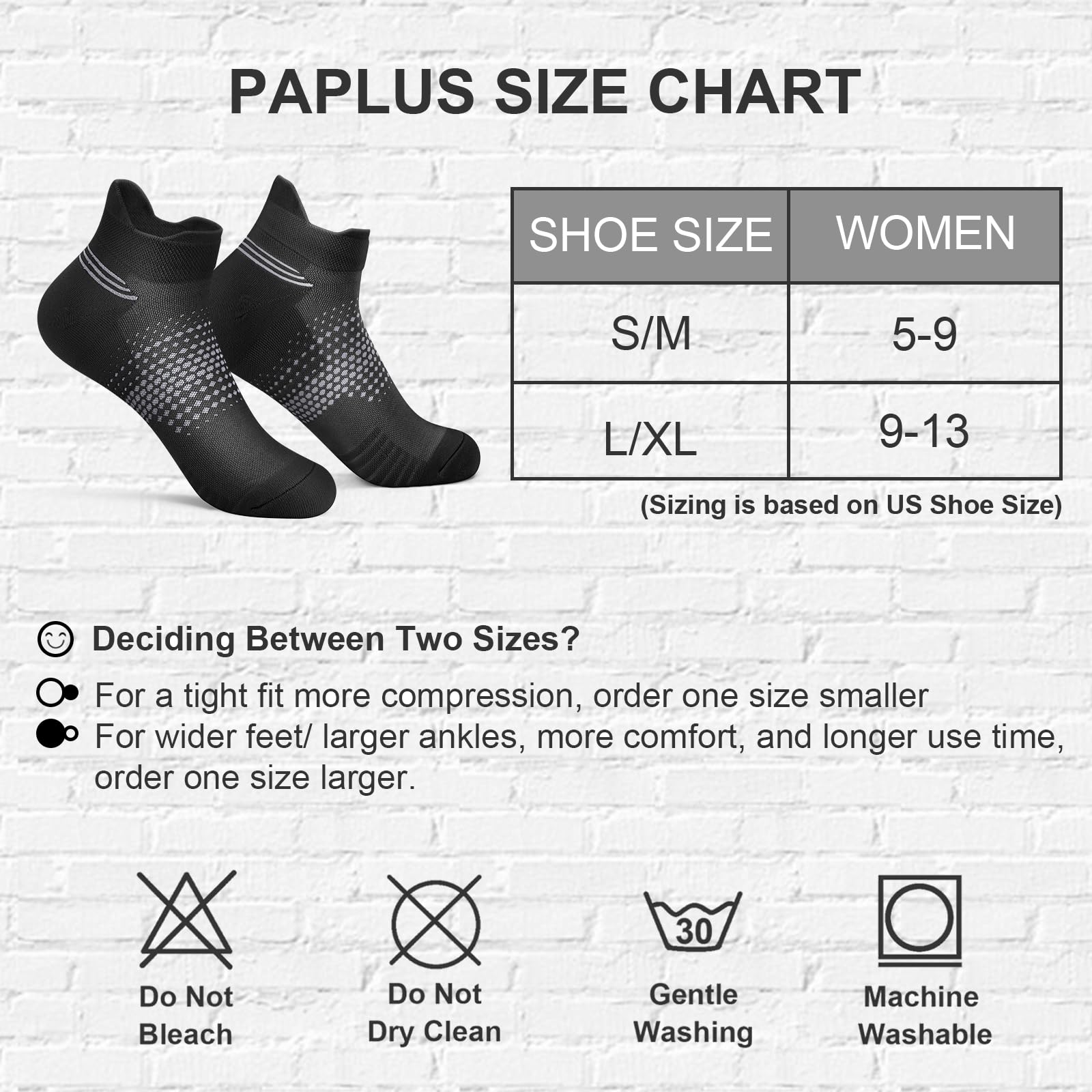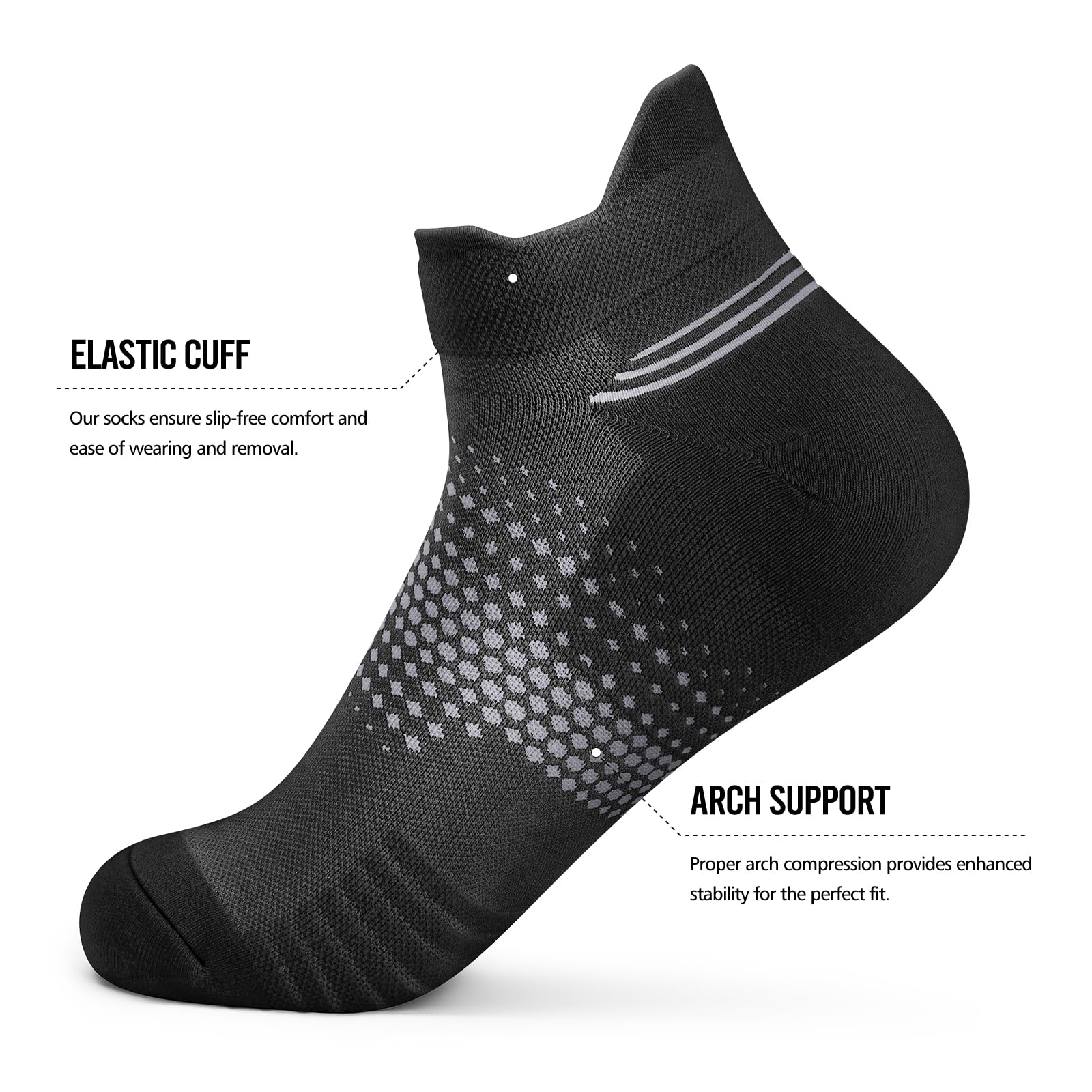 [ARCH SUPPORT]: Compression ankle socks(8-15 mmHg) provide all-round athletic support for stability. The women's compression socks with compression band at the arch and targeted compression zones promote blood circulation and relieve foot fatigue during running