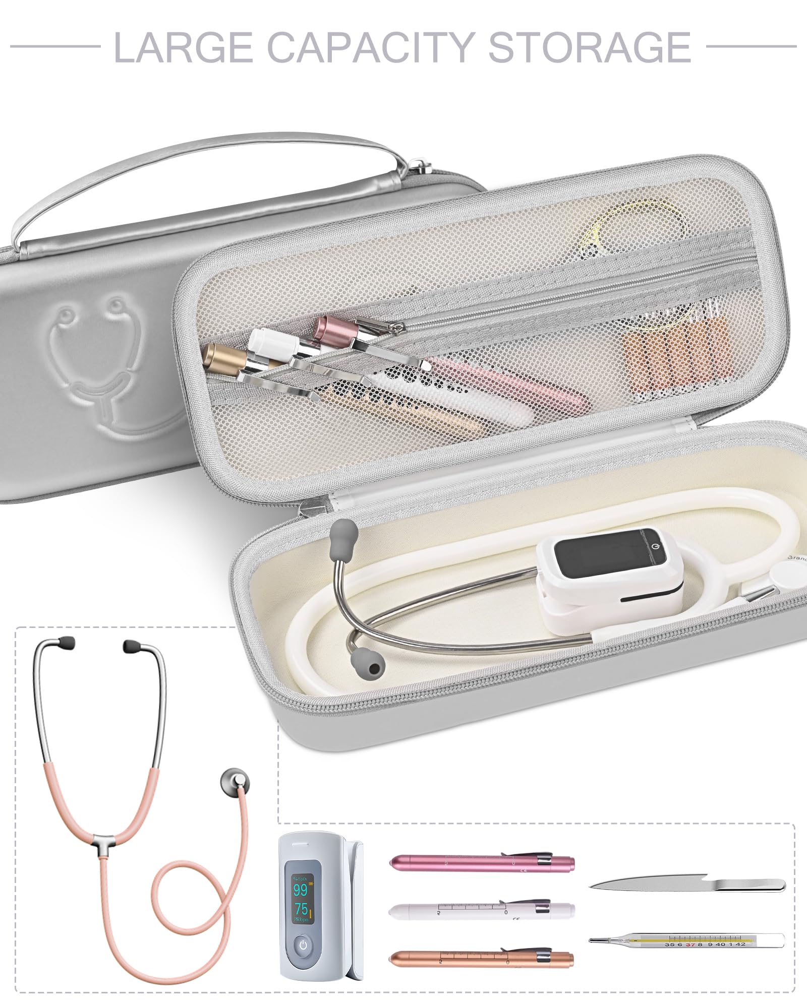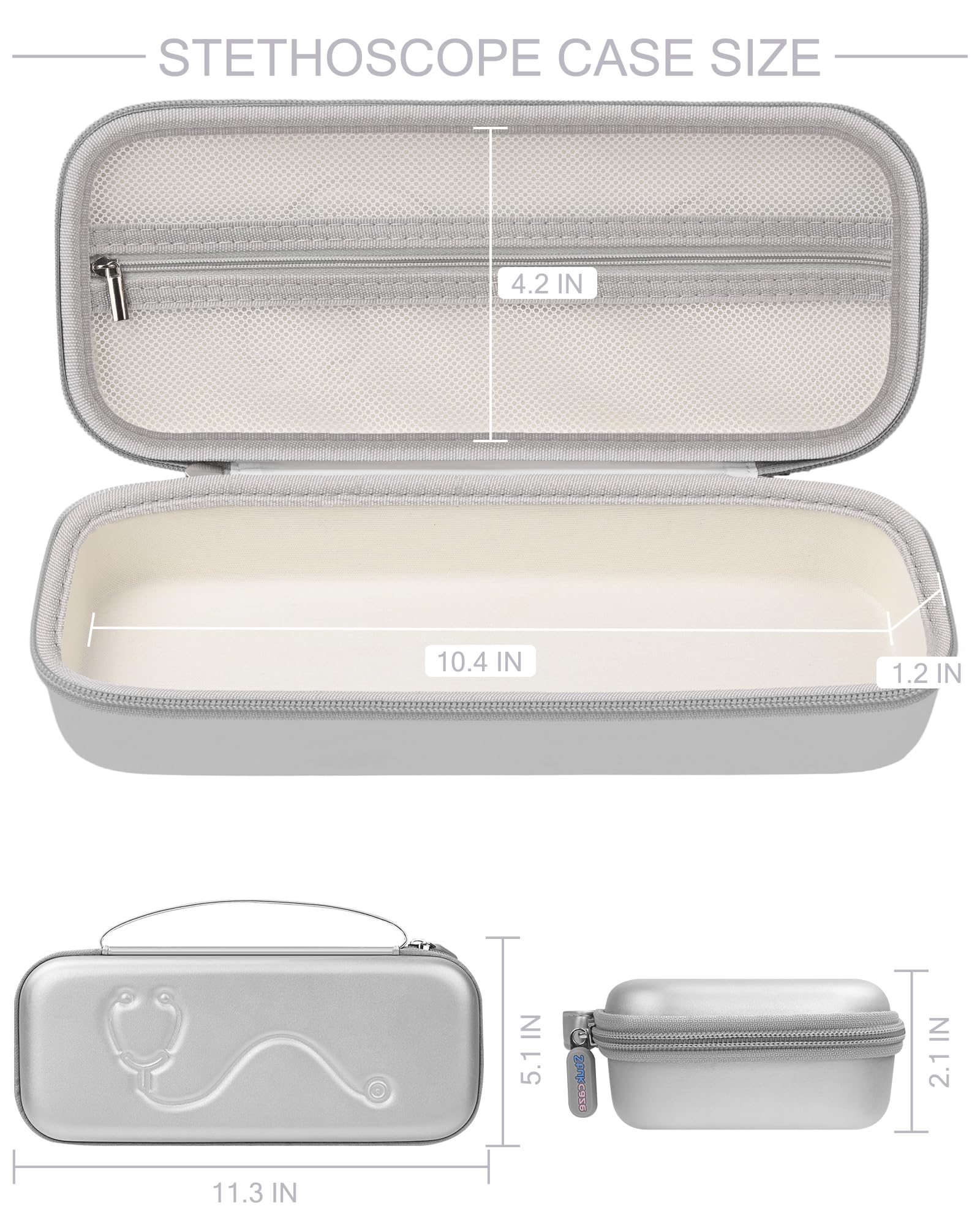 【LARGE SPACE】STUKCAZE stethoscope case bottom size is 10.4 x 4.2 IN, fit for most type of stethoscopes such as 3M Littmann Classic III, Lightweight II S.E, MDF Acoustica Stethoscope.