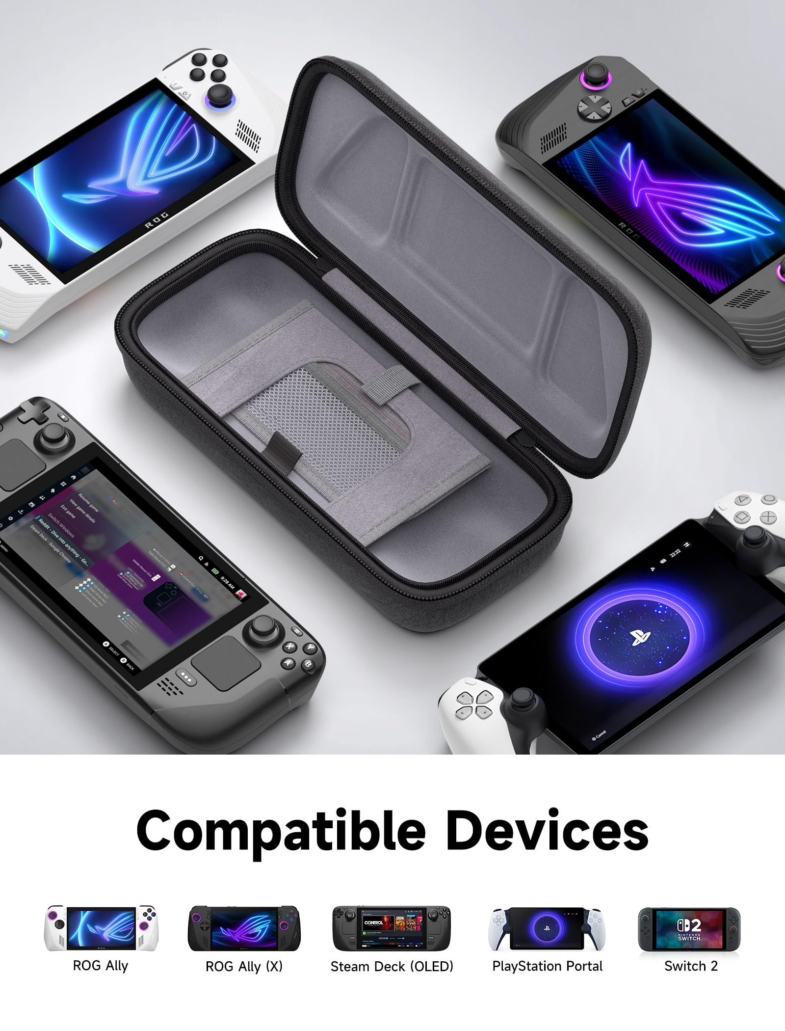 Steam Deck & ROG Ally Carrying Case: This carrying case is designed for Steam Deck (OLED) , ROG Ally and ROG Ally X (2024), also compatible with Nintendo Switch 2, PlayStation Portal Remote Player, providing safe daily protection, sturdy and durable. Giving you convenient storage and portable travel