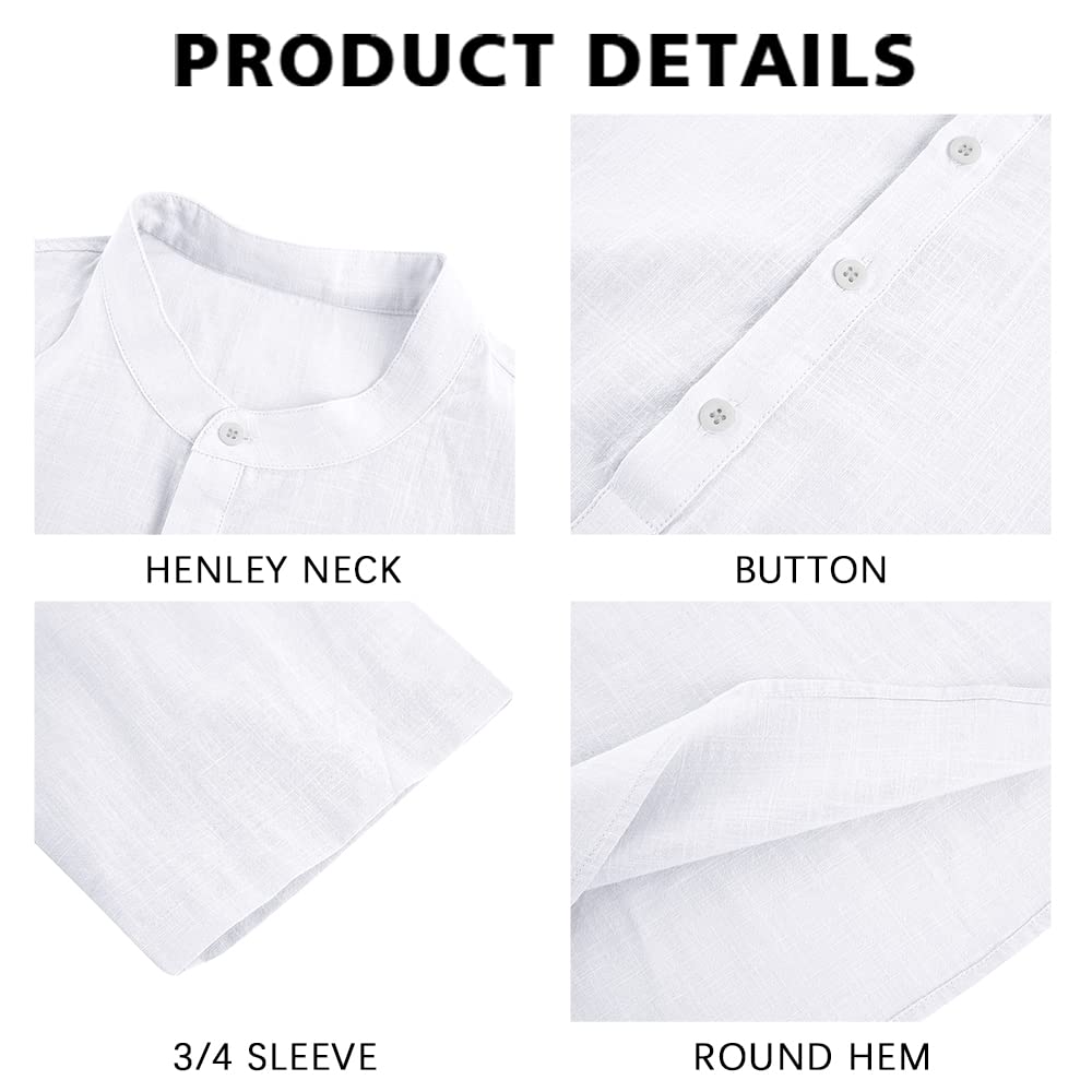 FEATURE -- Regular-Fit style, four-button henley placket, solid color, one chest pocket, 3/4 long sleeve. Simple design will not go out of style.