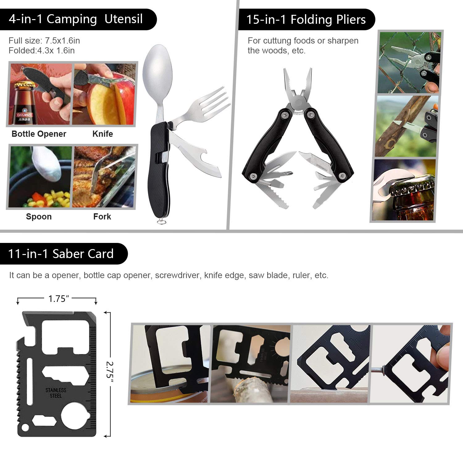 [Premium Survival Tools]: Includes the most useful survival tools: tactical folding knife, fire starter, compass, folding pliers, flashlight, multi-function paracord bracelet and more practical survival gears. Emergency tent provides you a temporary shelter; thermal blanket can retain 90% body heat when you in cold. 12 inches survival axe includes the functions of chop, cut, split, chip, trim, open, and have a sharp blade and a protective Nylon sheath.