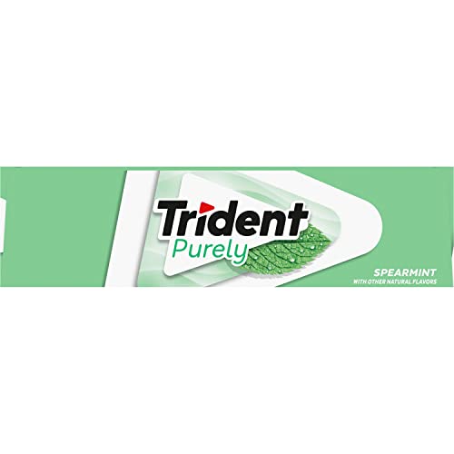 Trident Purely Spearmint Sugar Free Gum is a delicious way to achieve fresh breath and protect your teeth. With 40% fewer calories than sugared gum, Trident Purely Spearmint gum is flavored with mint and menthol and contains no artificial flavor or color. The ADA Council on Scientific Affairs found that the physical act of chewing Trident sugar free gum for 20 minutes after eating stimulates saliva flow which helps to prevent cavities by reducing plaque acids and strengthening teeth. Bulk gum packs give you plenty of sugarless gum to stock your company or small business, and each individual pack of gum is designed so the sticks stay inside, making it easy to toss in your car, backpack or desk drawer. These sticks of sugar free chewing gum are individually wrapped for extra freshness. Whenever you need a long lasting chew, choose Trident Sugar Free Chewing Gum.