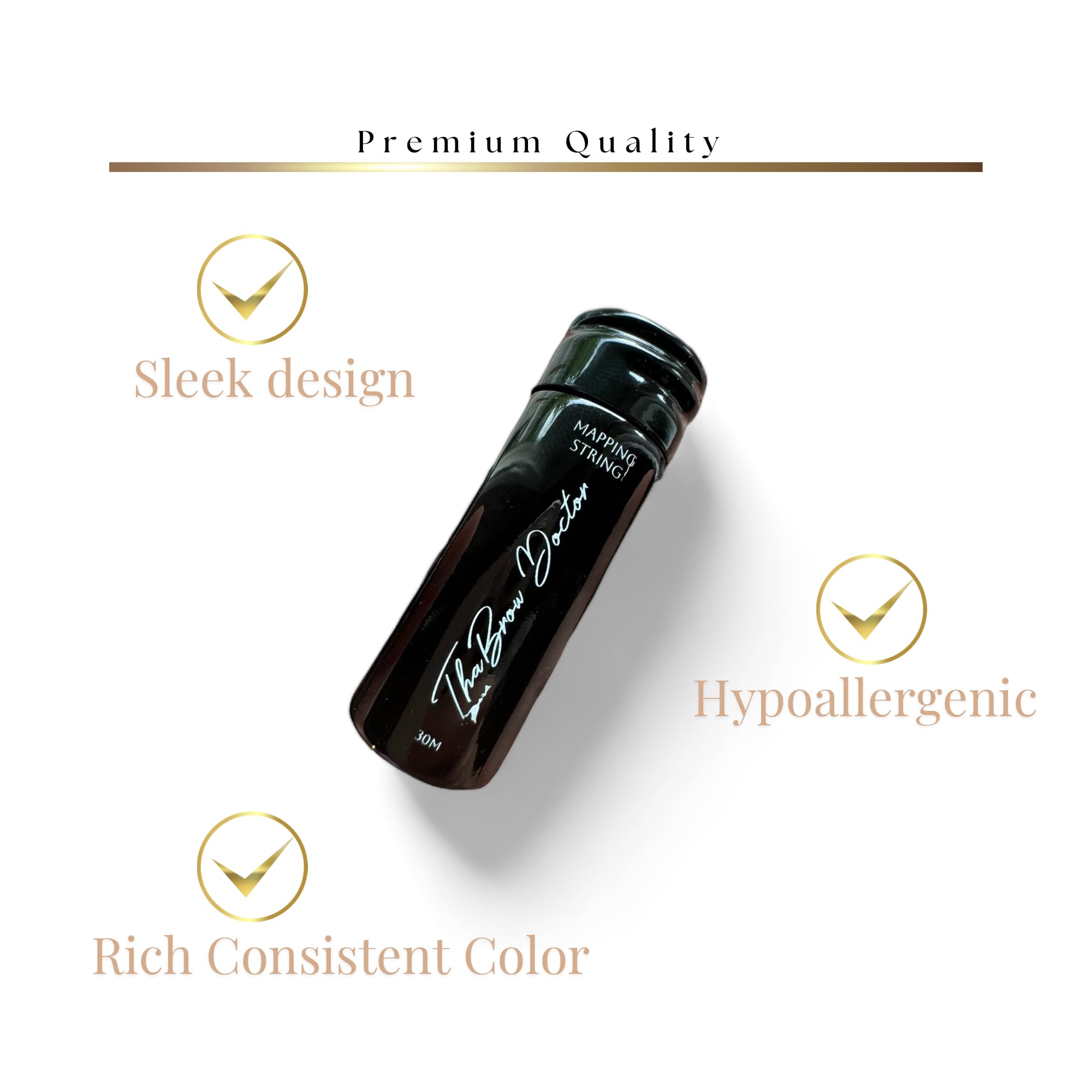 Experience the precision and convenience of our pre-inked white Brow Mapping string. Measuring an impressive 30 meters (100ft) per bottle, this mapping string is designed specifically for microblading, permanent makeup, and brow artistry. Housed in a luxurious glass bottle, this mapping string is a must-have tool for professional estheticians, makeup artists, and brow artists. The pre-inked design ensures consistent and accurate mapping, allowing you to create flawless brow shapes with ease. Whether you're a seasoned pro or just starting out, this mapping string will elevate your brow game to new heights. Indulge in the luxury of precision and elevate your artistry with this essential mapping string. These luxurious glass bottles are created with your business in mind. These bottles allow the ink cased string to stay fresher, longer by locking in moisture. Do not store in direct sunlight, store in a cool, dry place. This fine string allows for precise mapping and outlining of brows for accurate and consistent results. Whether your crafting the perfect arch or defining the modt delicate strokes, tis product delivers superior preformance, elevating your artisrty to new heights. Invest in the best to offer your clients exceptional results and enhance your reutation as a leading expert in the brow industry.