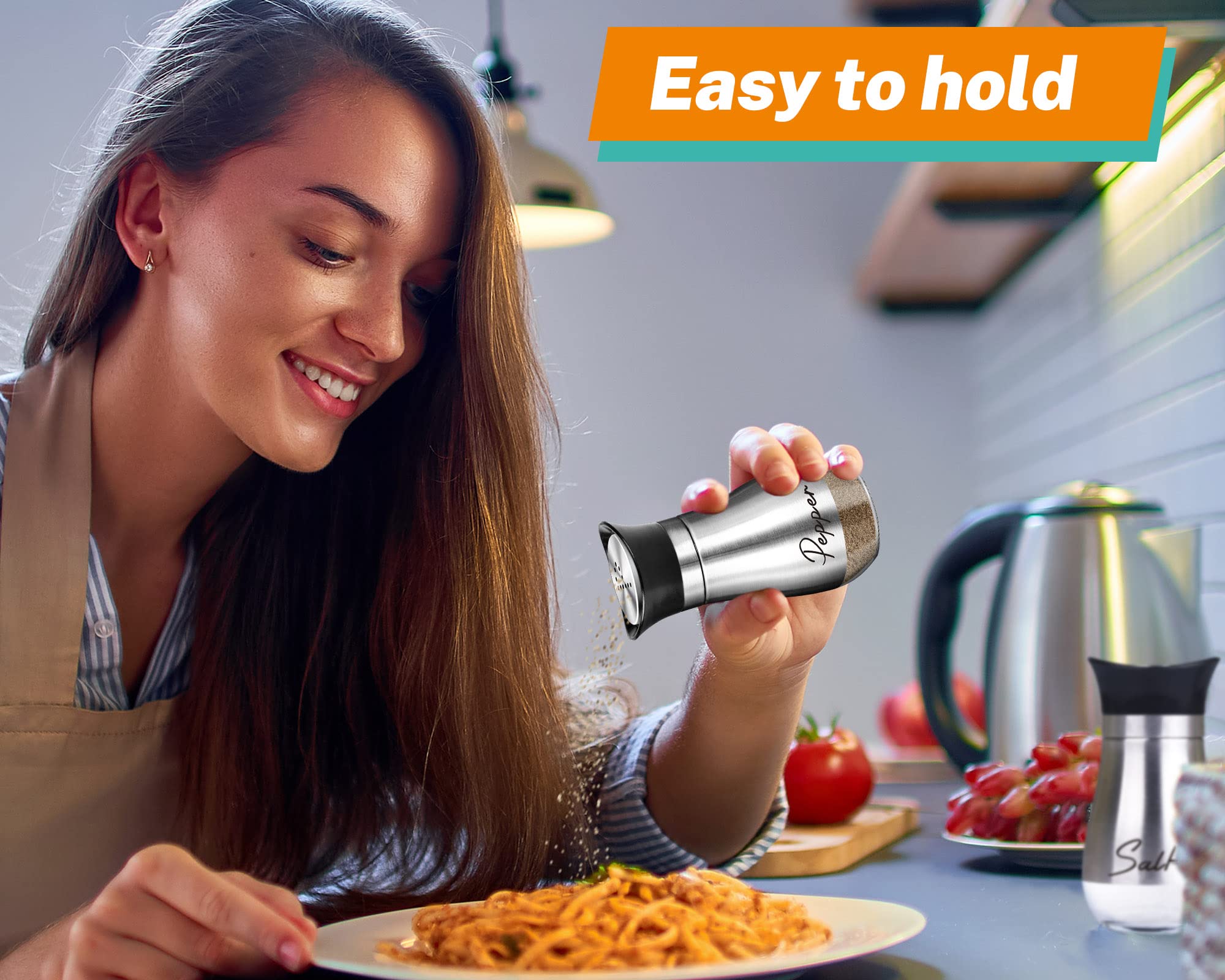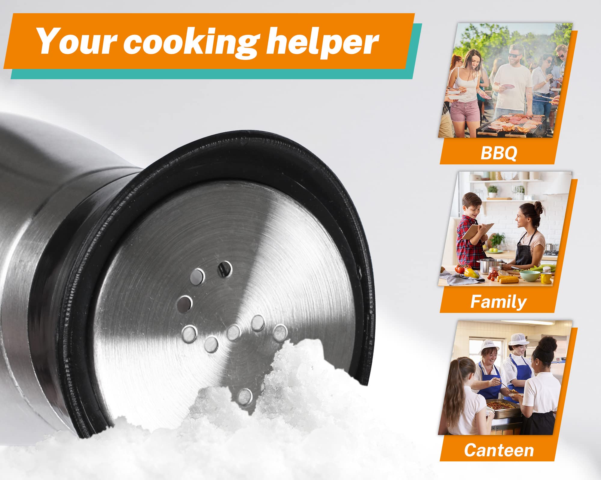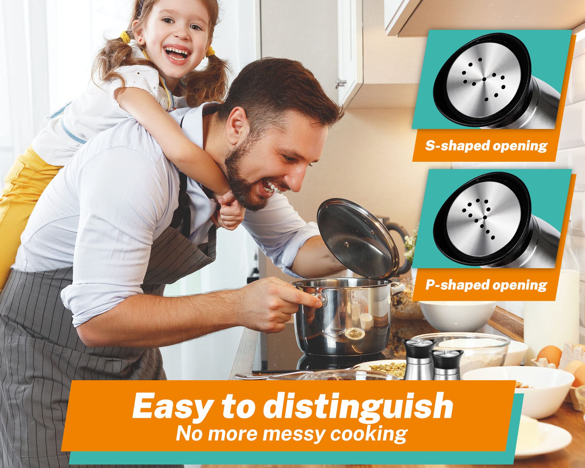 No Over-Seasoning:There are 11 small holes evenly distributed on the Stainless Steel Lid, you only need to shake 1-2 times at most to get the salt and pepper flowing just right, saving time and not over-seasoning. You and your family can enjoy the pleasuring of cooking