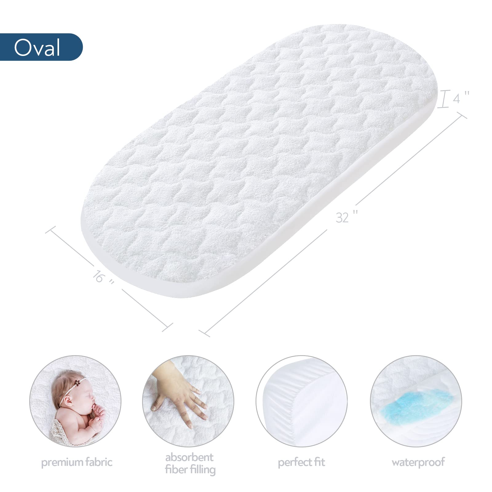 ❤ 100% Waterproof: Our bassinet mattress covers made of high quality TPU waterproof Membrane, provide protection from all other liquids, including fluids, perspiration, bed wetting, and stains. It will give your baby a clean and healthy sleeping environment.