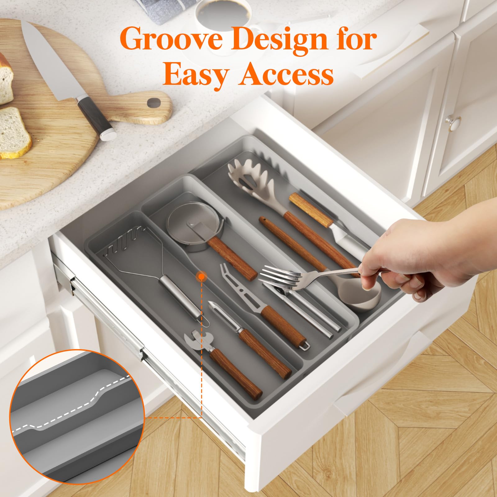 Sort Your Silverware: The silverware tray comes with 2-3 compartments, creating more space in drawers for spatulas, ladles, tongs, utensil sets, and whisks. Streamline your cooking with a no-install organizer that keeps cutlery at your fingertips