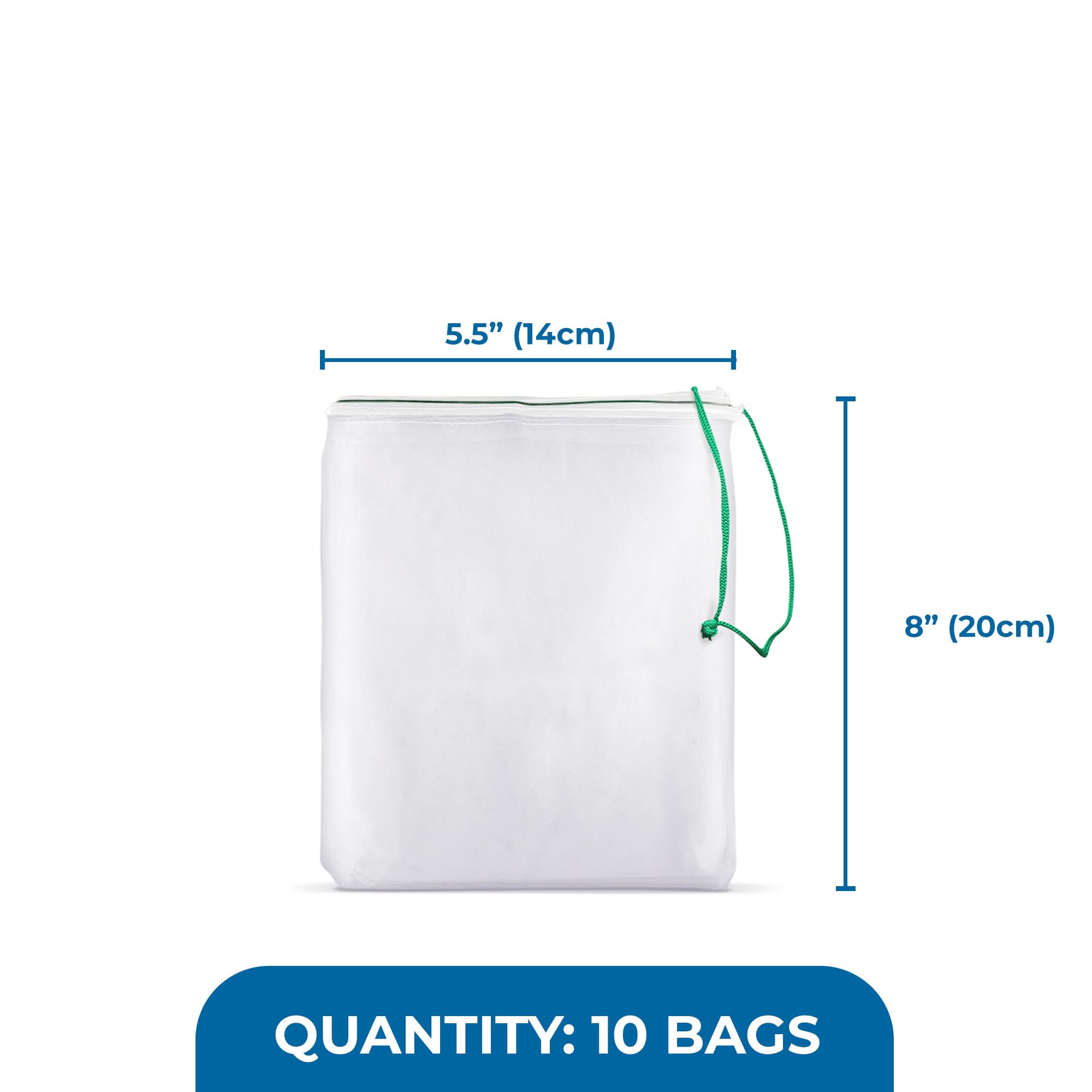 Versatile Mesh Media Filter Bags --- Works with any media you wish to use in your tank, 180-micron fine mesh Media Filter Bag by SunGrow is the perfect choice to use in any media filter. Each pack has 10 pcs and are about 8 inches long with 5.5 inches wide. You may add pelletized and granular charcoal, crushed coral, zeolite, peat, barley pellets, bio balls, ceramic rings, ceramic remover and other types of granulated filter media. You can also utilize this in different power filters.