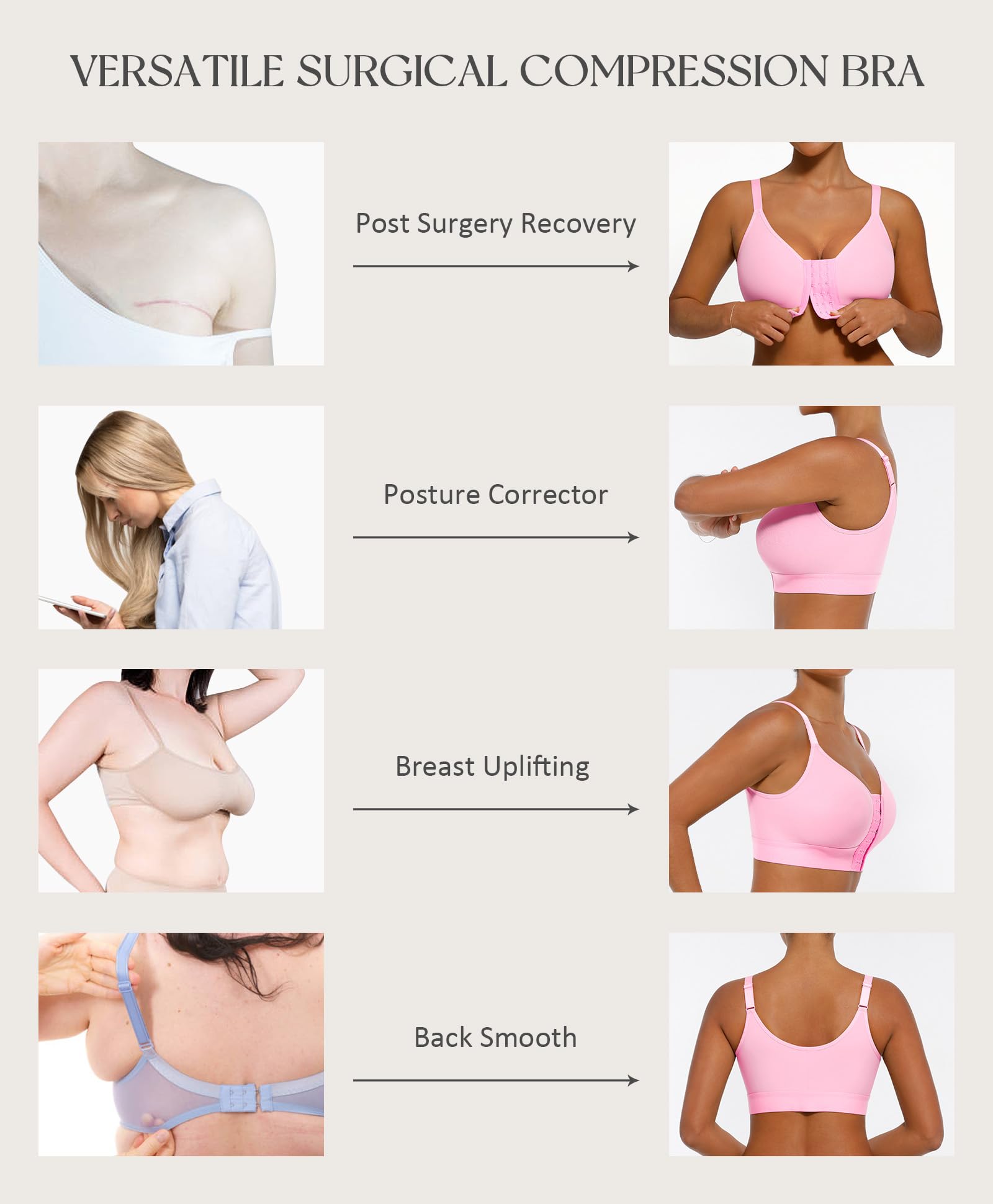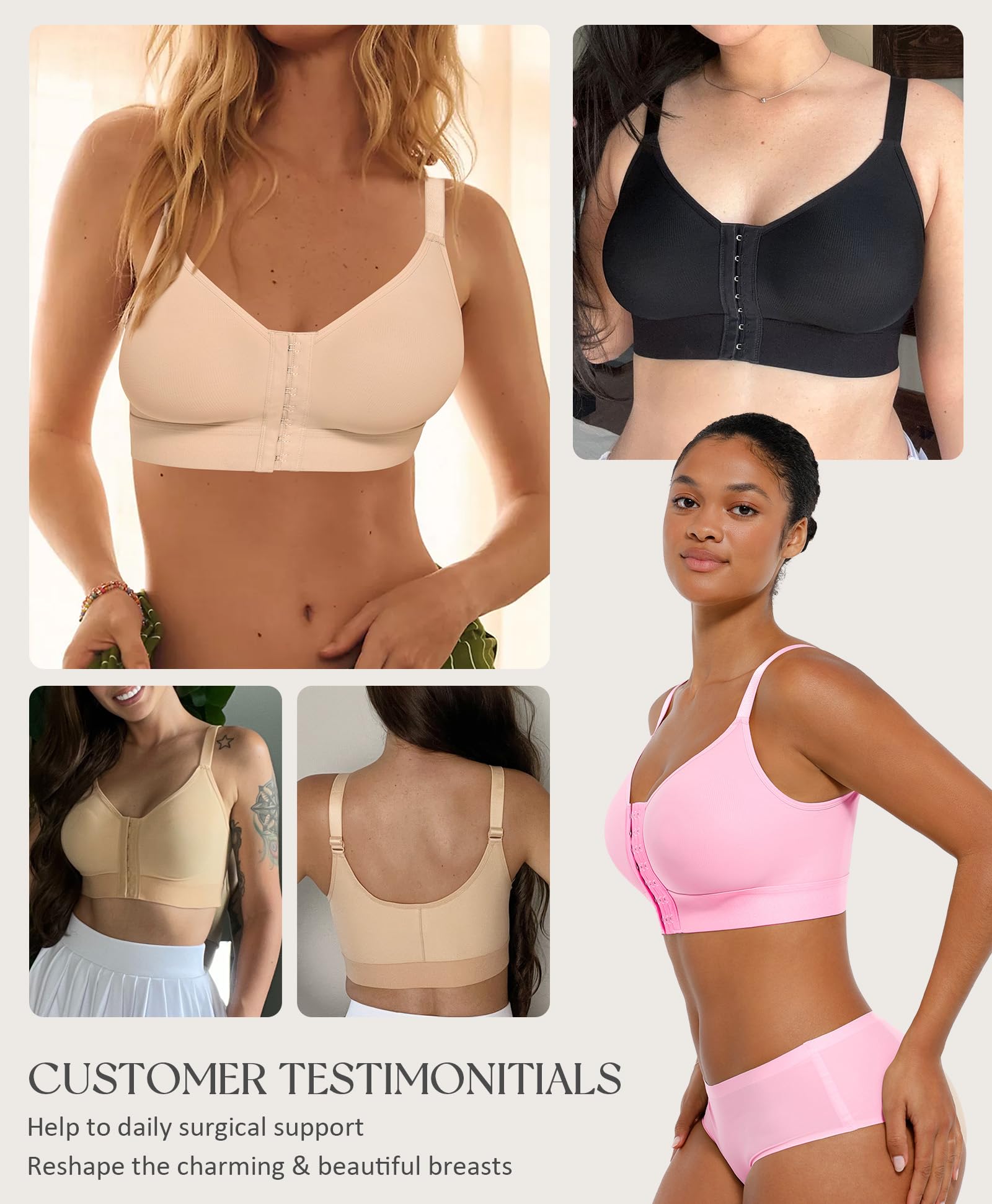 FITS COMFORTABLY: Our surgical bra is non-padded and made of ultra-fine fiber yarn with a high content of spandex. It features a smooth fabric surface, comfortable texture, seamless fit, and contours to the body without leaving marks, reshaping body contours. Soft and non-restrictive, it can be worn comfortably all day long with loungewear or similar clothing.