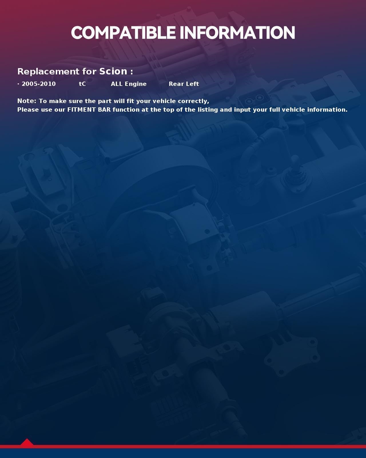 [Vehicle Fitment]: Rear brakes compatible with 2005 2006 2007 2008 2009 2010 Scion tC-- Rear Left Driver Side