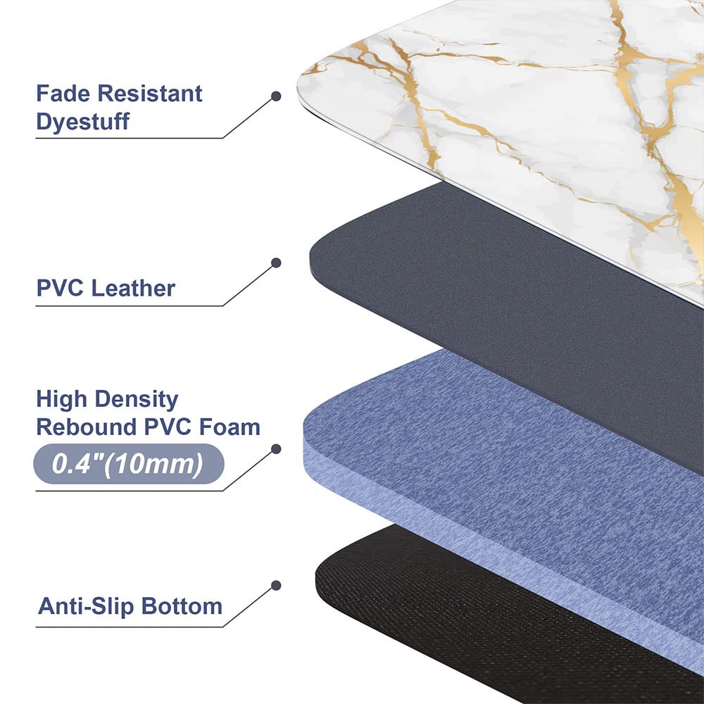 Practical Size and Wide Uses: 17"X29"+17"X47", marble cushioned kitchen rugs set is ideal for kitchen, sink, dining room,bathroom and office.