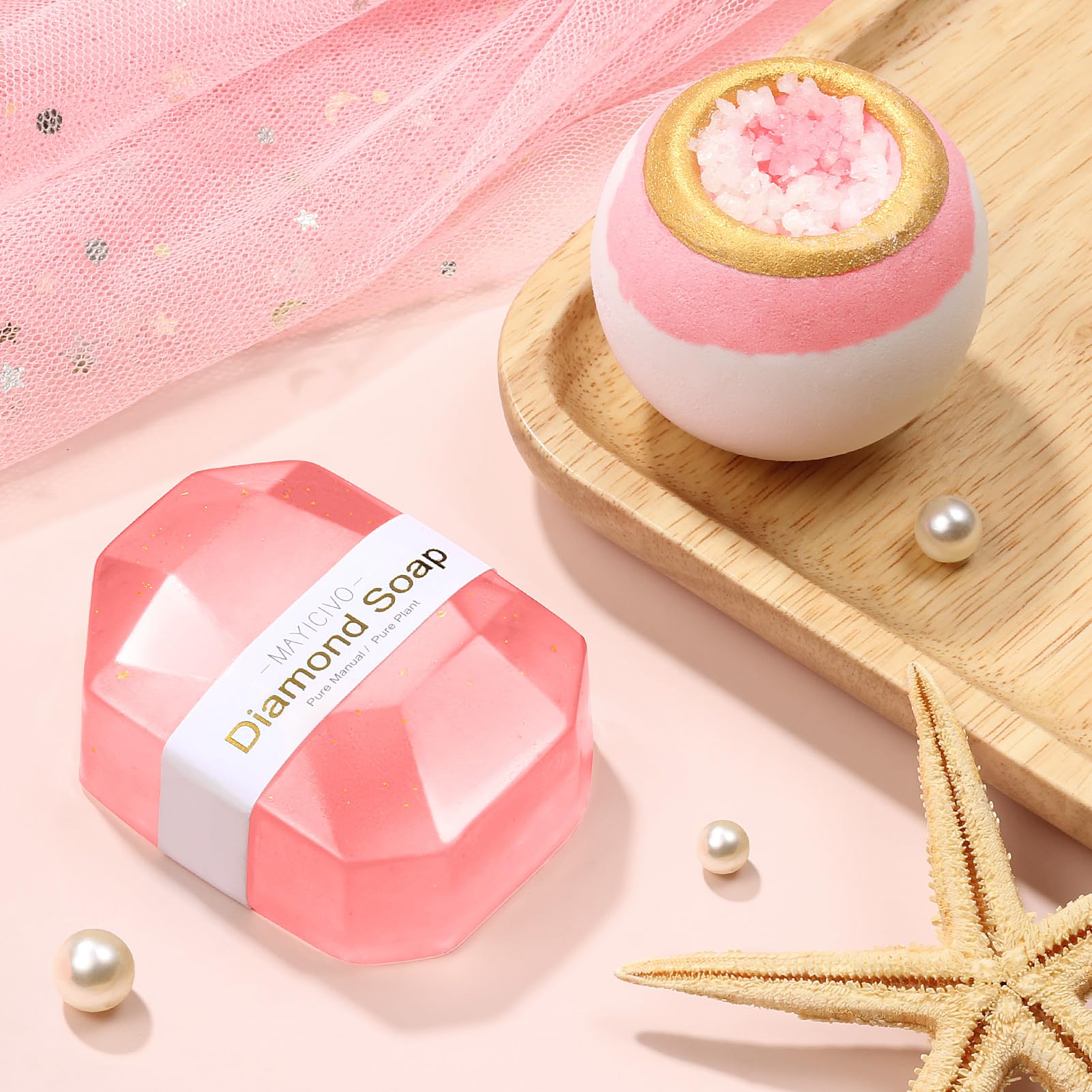 ROSE-SCENTED RELAXING SPA GIFTS: The 4oz rose scented candle in our get well gift baskets care package for women is made of natural wax, can burn smokelessly & evenly for up to 30 hours. Comes with a diamond handmade soap, an exquisite bath bomb, all release gorgeous & long-lasting rose fragrance, will bring her a luxurious & sublime bubble bath experience, help soothe her mind and relax body. A thoughtful rose-scented relaxing spa gifts for female Womens Birthday Gifts for Mom Sister