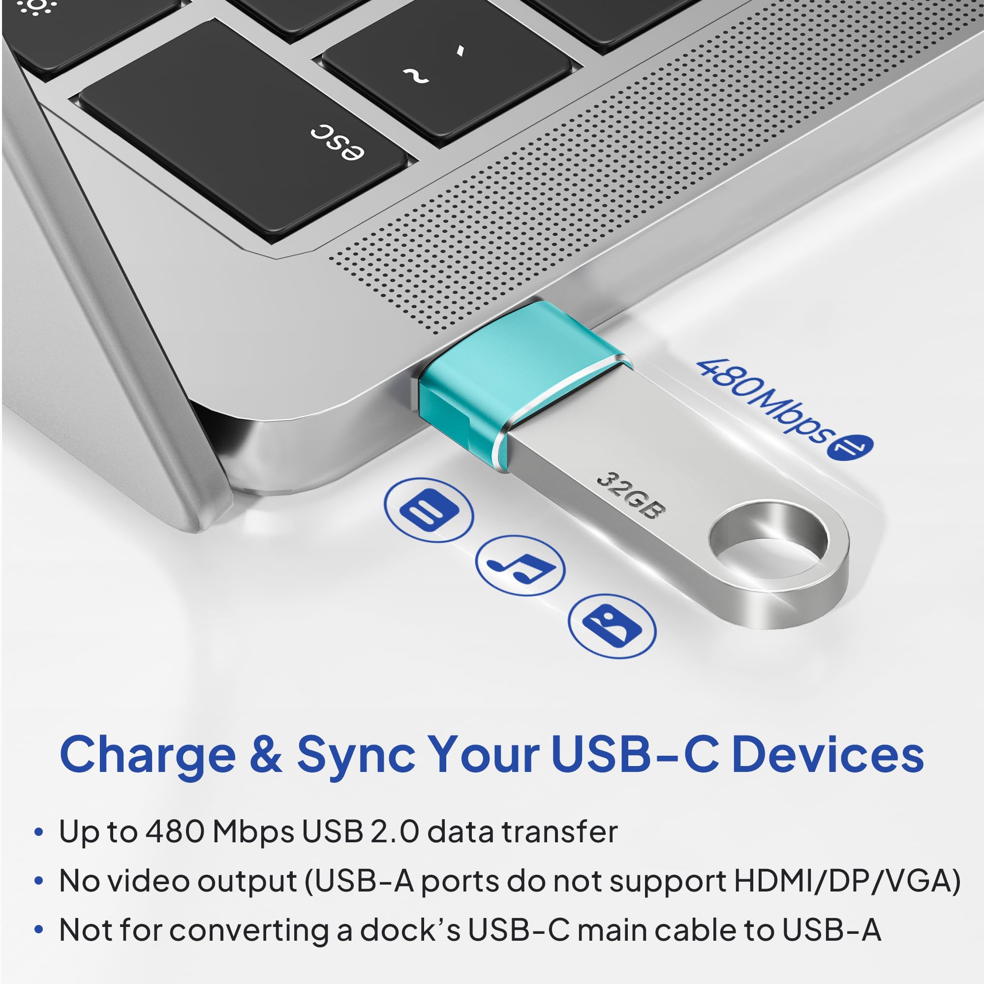Read Before You Buy — No Video Output: These adapters support charging and USB 2.0 data transfer, but cannot transmit video signals. Except for standard USB webcams (which use USB data only), they are not compatible with HDMI/DisplayPort cables, video-capable USB-C hubs, or any docking stations that provide video output.