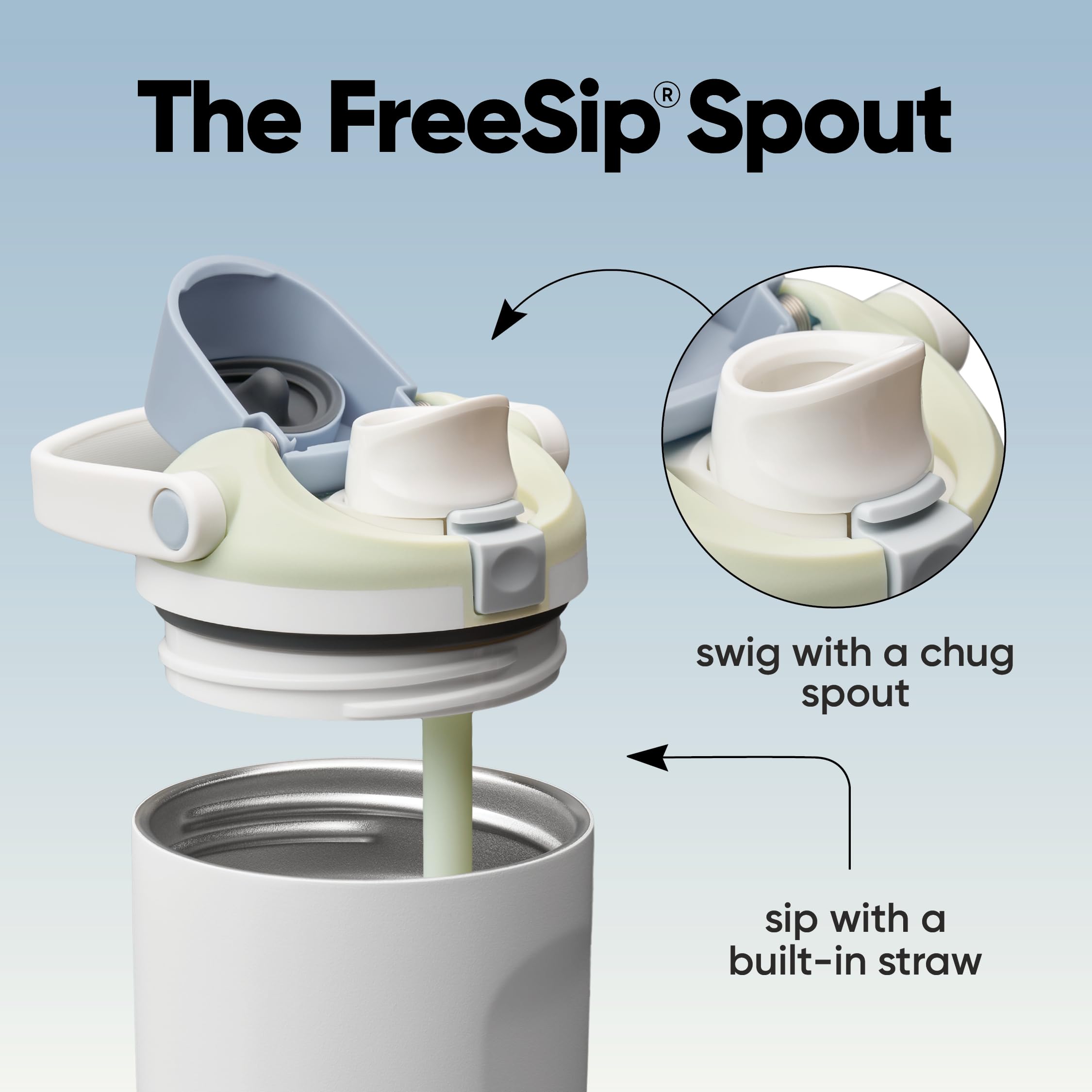 Choose your sip style—straw or swig: Patented 2-in-1 FreeSip spout is one of a kind; it lets you sip upright through the built-in straw or swig by tilting back the spout
