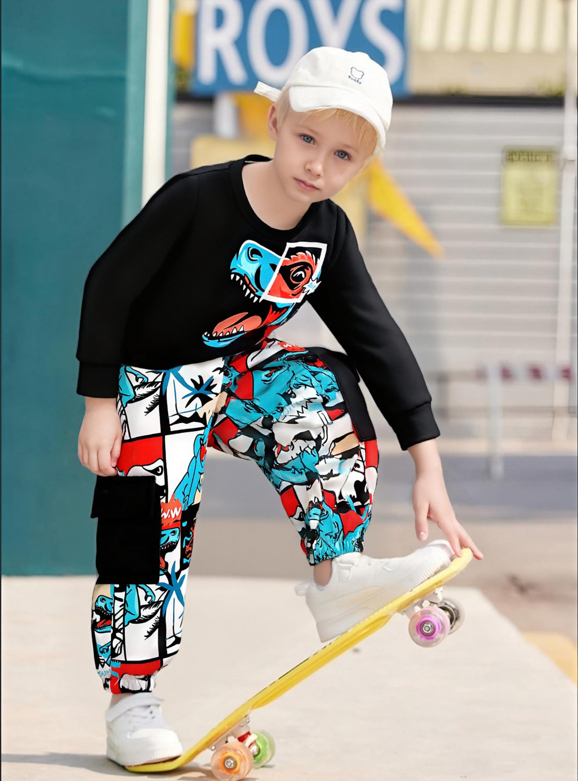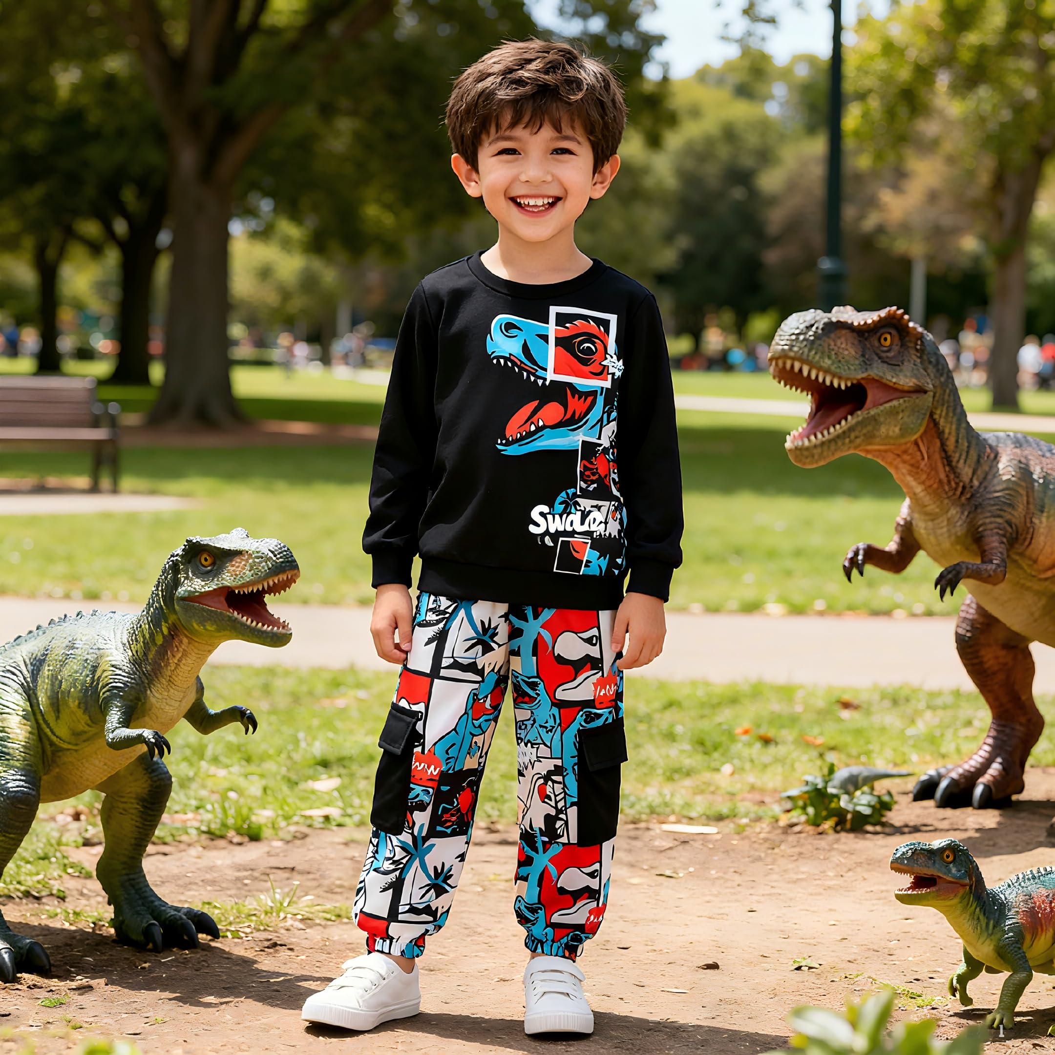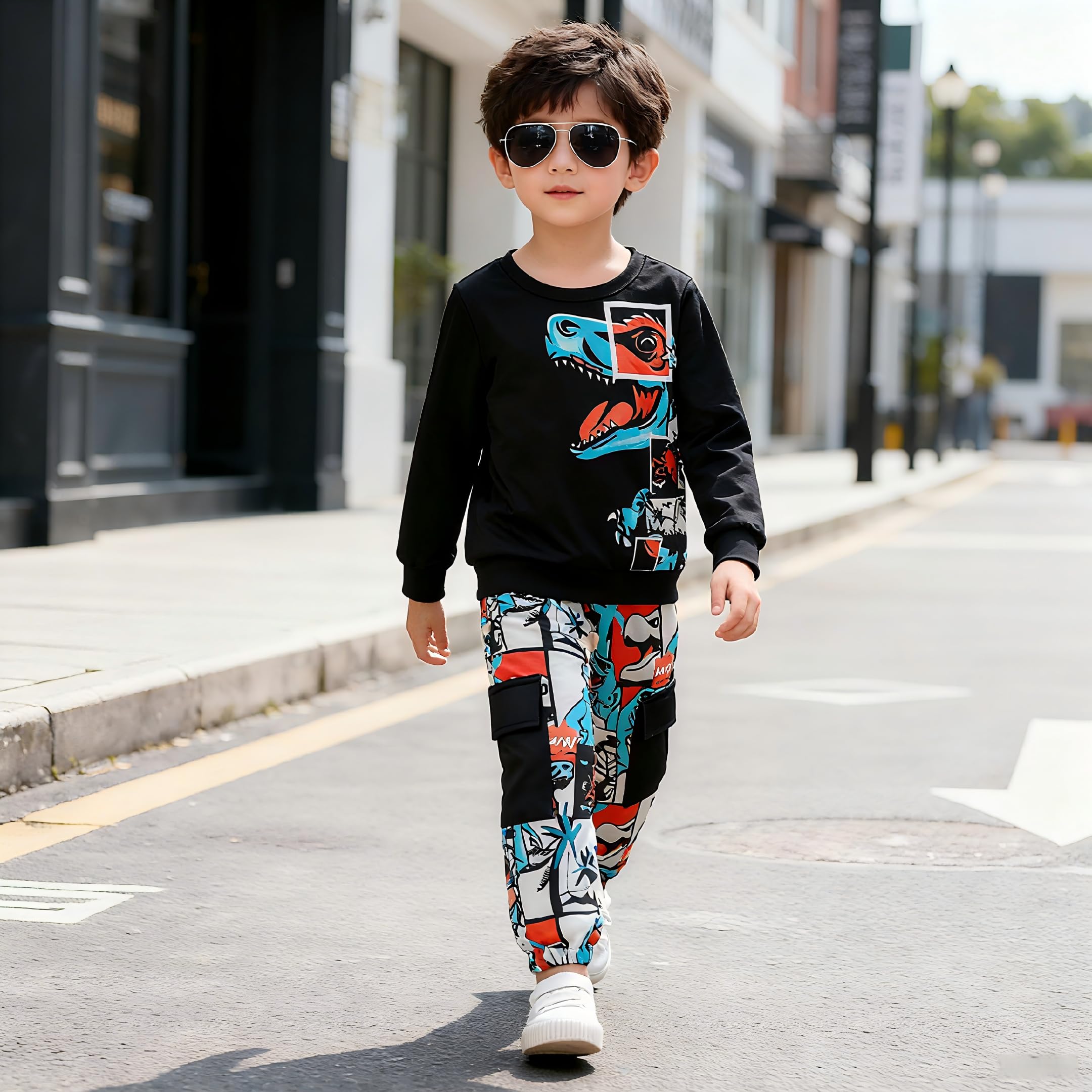 Cool Design: Toddler boys Fall/winter sweatsuit is very fashionable and cool. The printing using 3D printed patterns with bright colors. Such as dinosaur, astronaut, lightning, auroras, game consoles, tie dye, etc.