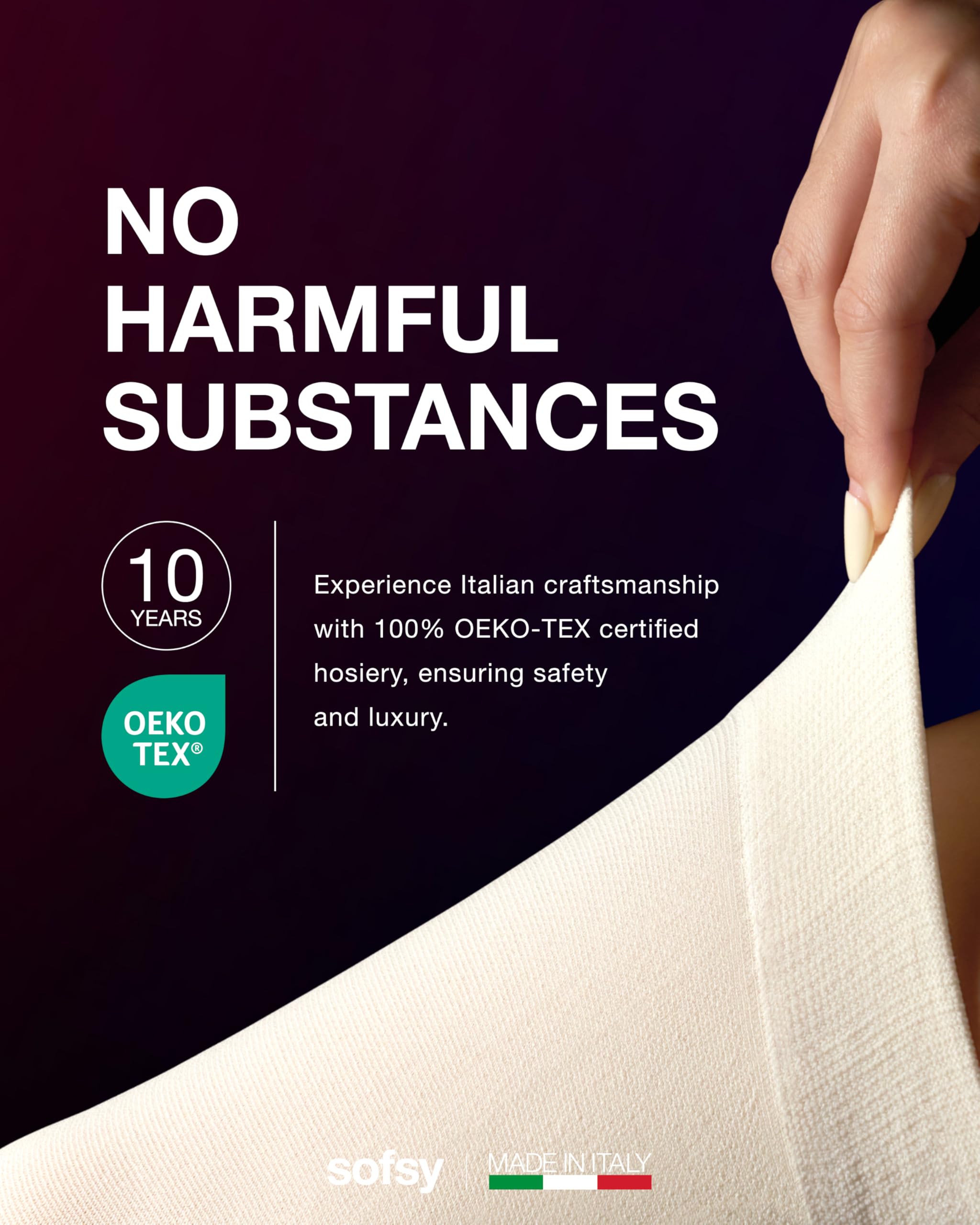 3rd Party Certified Safety: Experience 10 years of Italian hosiery craftsmanship with 100% OEKO-TEX certified tights, ensuring safety and softness. These solid color tights are durable and skin-friendly — designed for those who value quality and comfort.