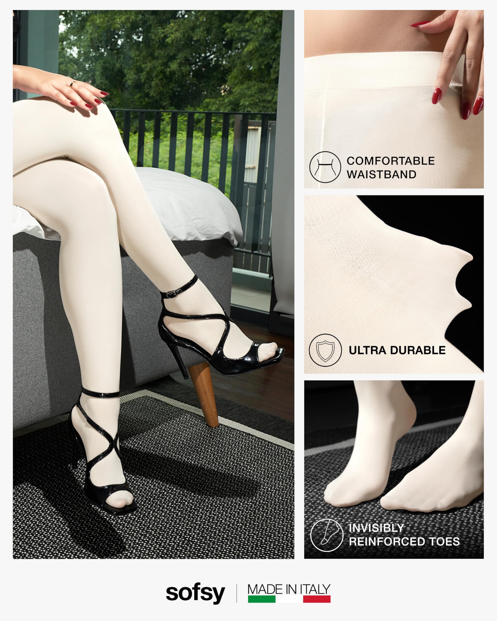 Fit for Every Shape: From S to 4XL, sofsy tights embrace every curve with an ultra-stretchy snug fit. The soft 4-cm waistband lays flat and smooth—never digging or rolling—offering all-day elegance and inclusive comfort in every size.