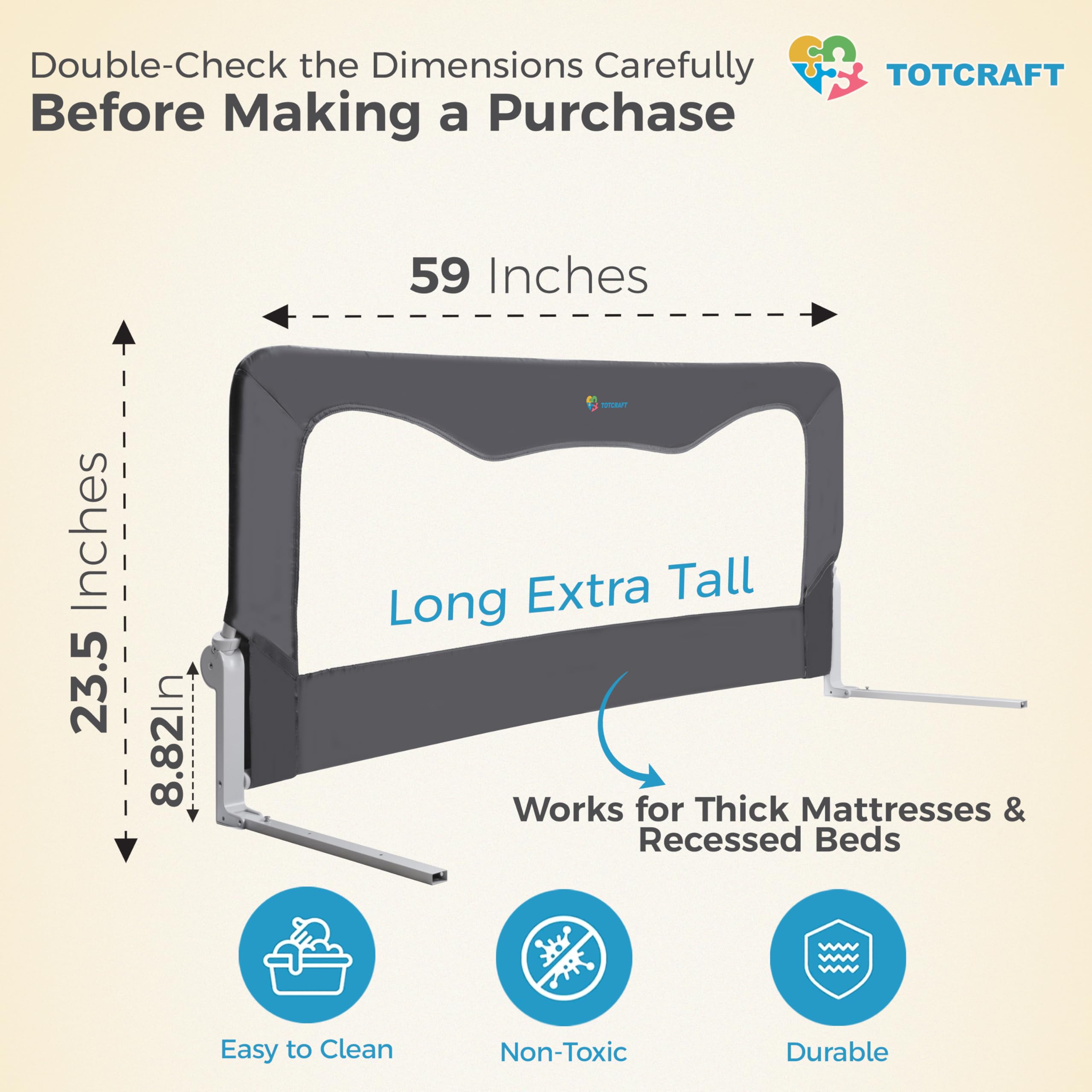 【 Recommendation】: This toddler bed rail (Long & tall 59” W × 23.5” H) is compatible with most mattress types, including thicker mattresses.