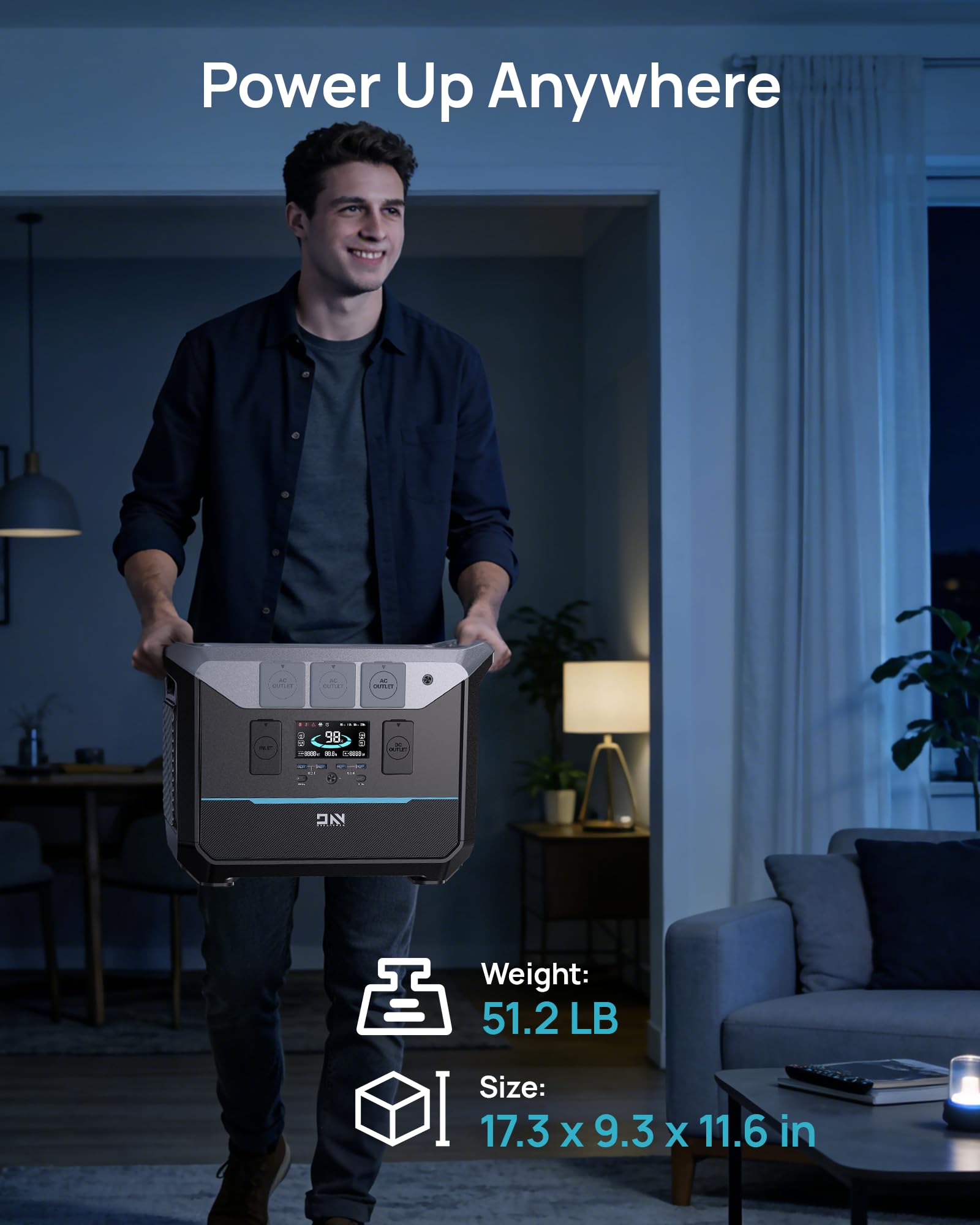 【11 Ports, Endless Possibilities】Your All-in-One Power Hub for Van Life & Job Sites Designed for versatility, this user-friendly station features 3 AC outlets, 2x 100W USB-C ports, a car socket, and more—allowing you to power 11 devices simultaneously. Keep your drone batteries charging, run power tools in your van, or host a backyard movie night. Its rugged, reinforced handle and compact design (41.2 lbs) make it easy to slide under a bed or take to remote job sites.