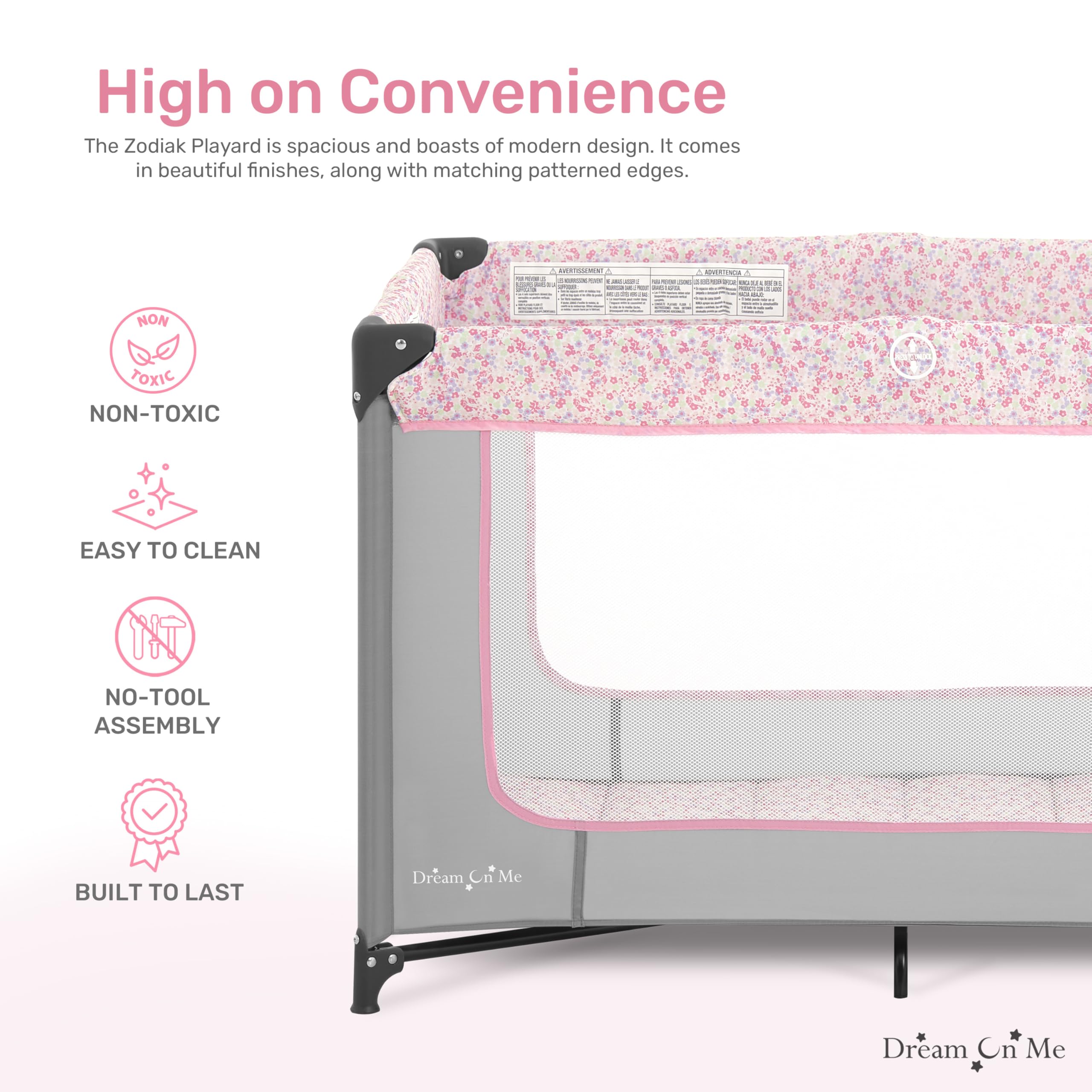 STYLISH DESIGN: The Zodiak Playard is spacious and boasts of modern design. It comes in seven beautiful finishes, along with matching patterned edges, which allow it to blend into any decor. To clean, simply wipe with a damp cloth and allow to air dry.