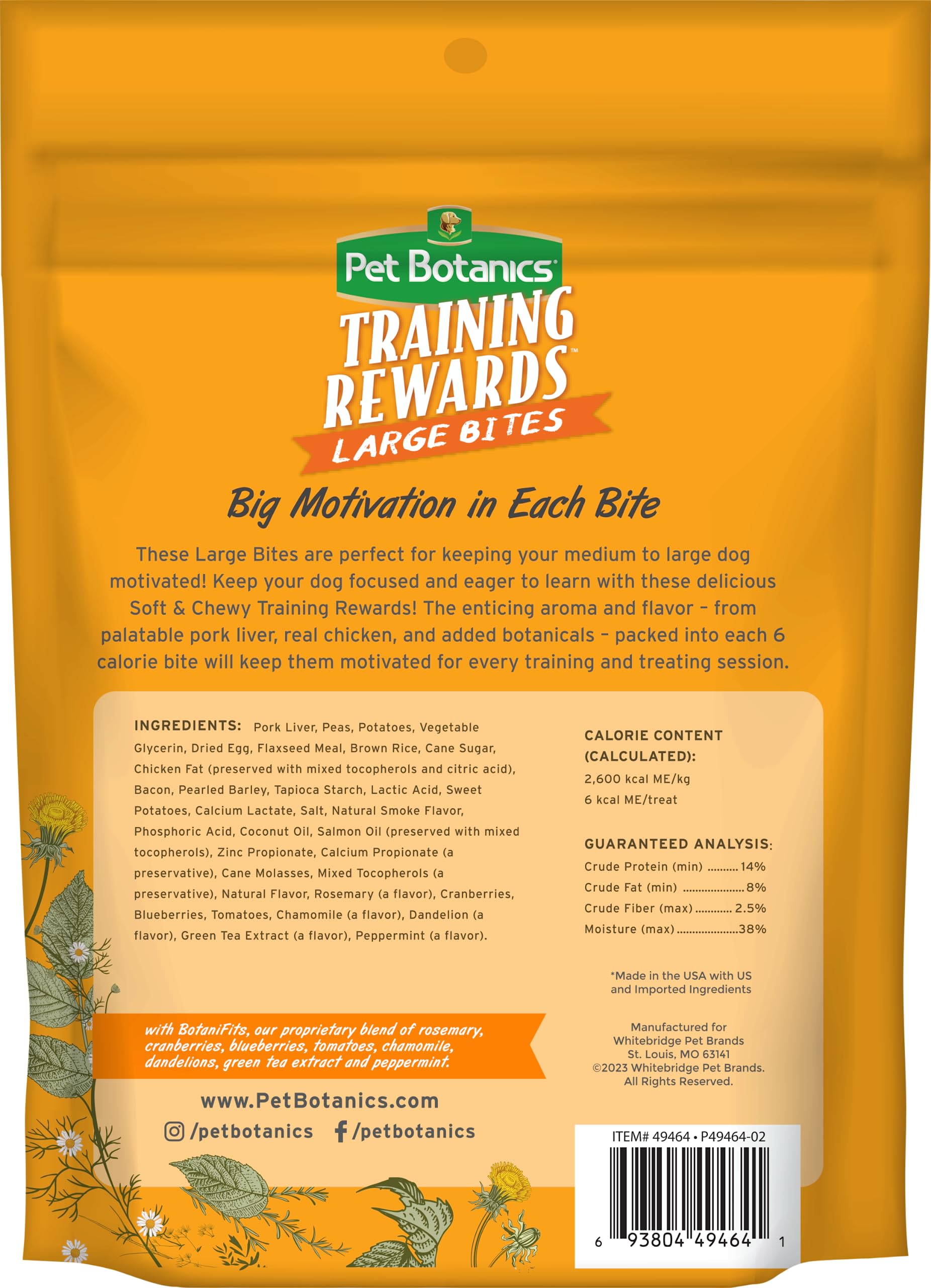 Keep your large breed dog focused and eager to learn with these delicious Soft & Chewy Training Rewards! The enticing aroma and flavor – from palatable pork liver, real bacon, and added botanicals – packed into each 6 calorie bite will keep them motivated for every training and treating session.