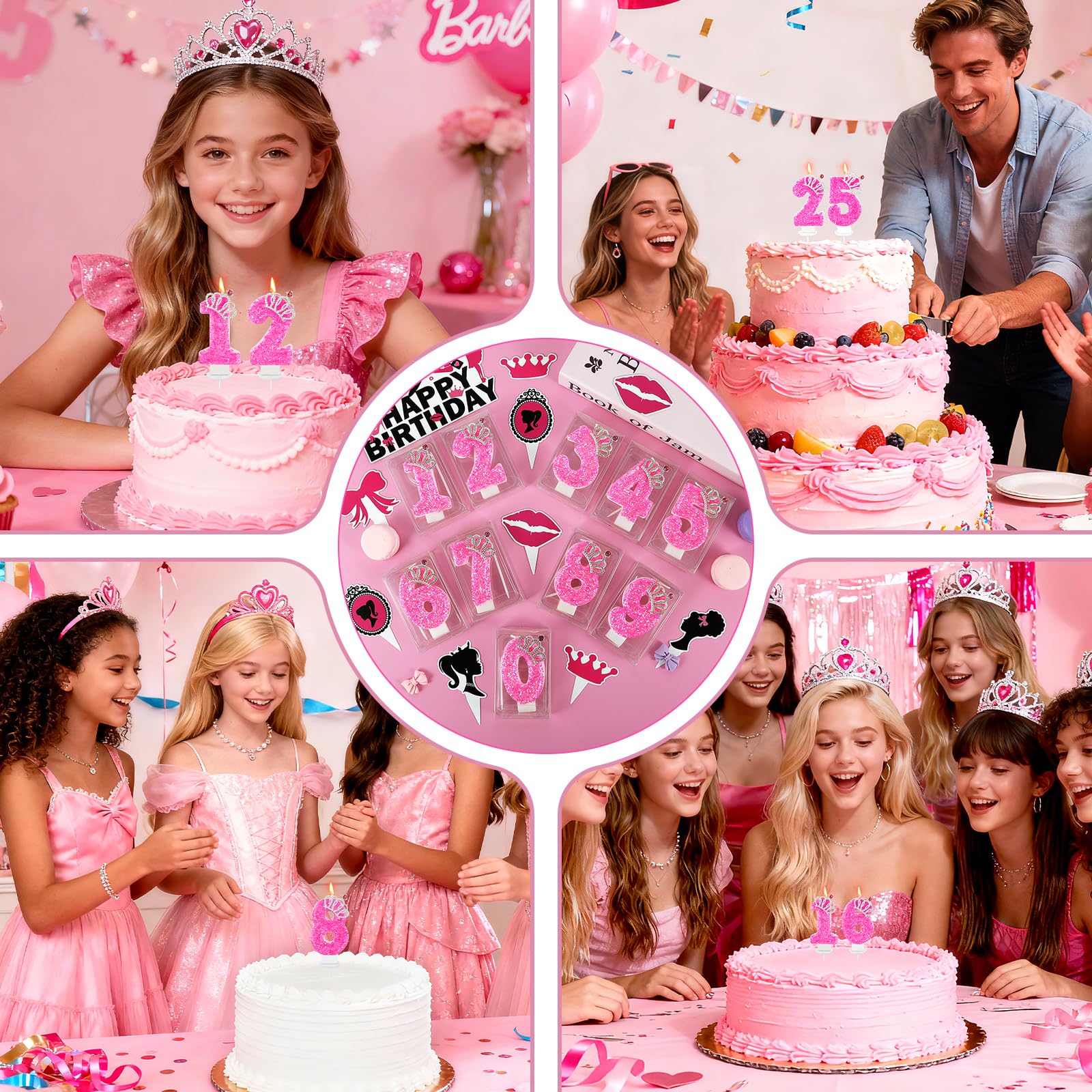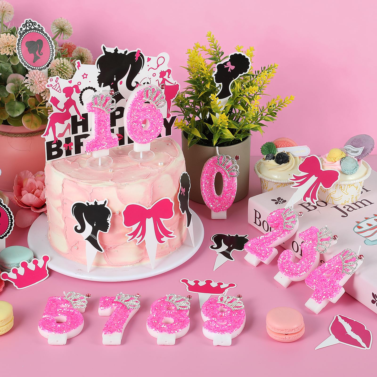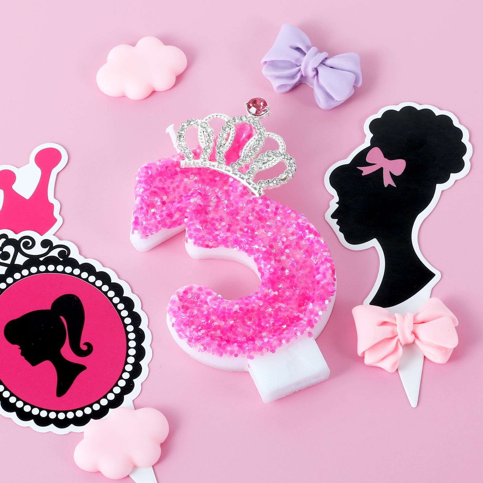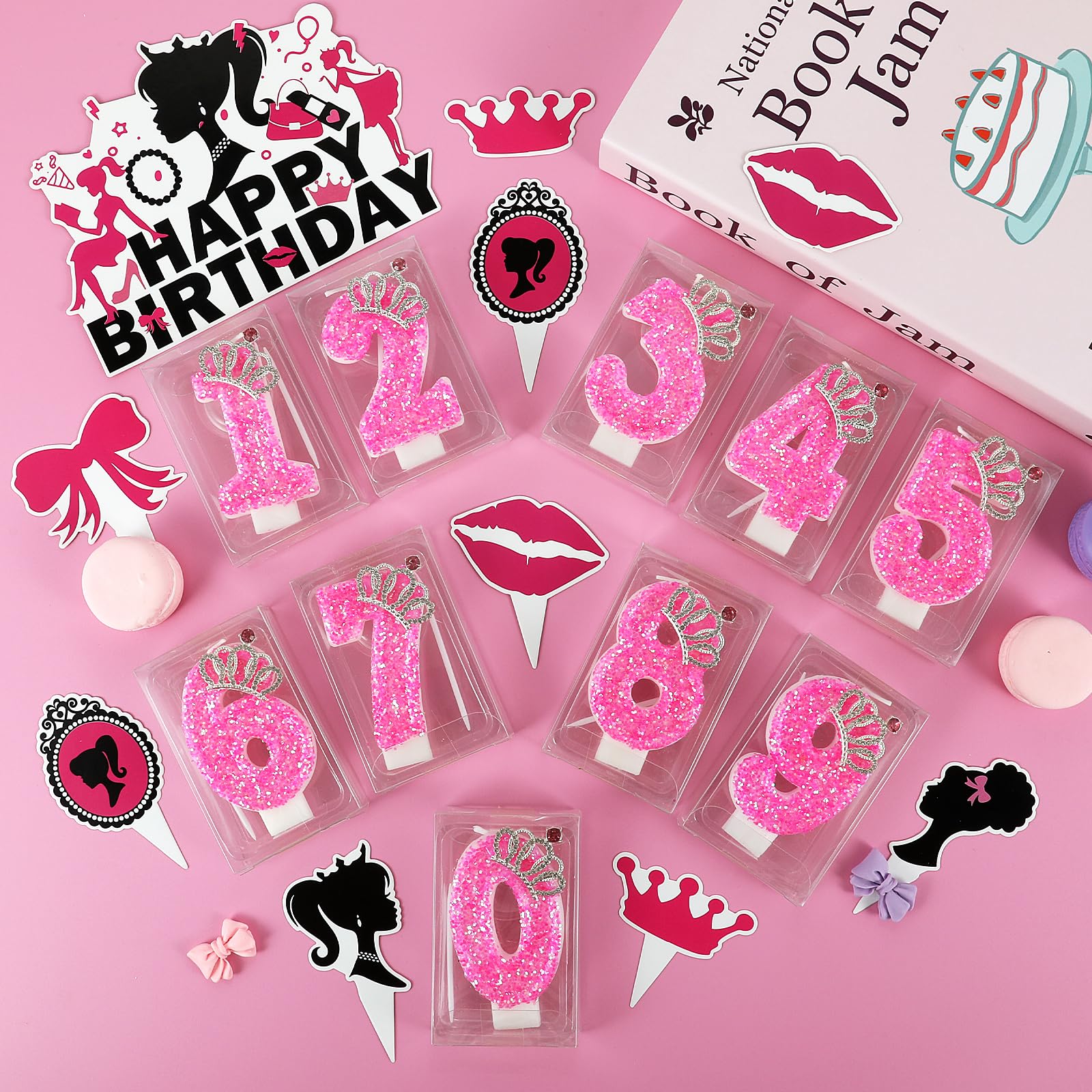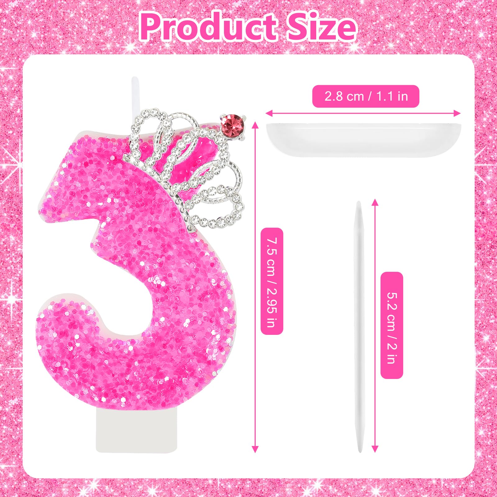 【Royal Elegance】Adorned with a exquisite crown and dazzling rhinestones, our hot pink number candles sparkle with luxury, adding a noble touch to your pink dreams party, singer-themed celebration, or any special gathering.