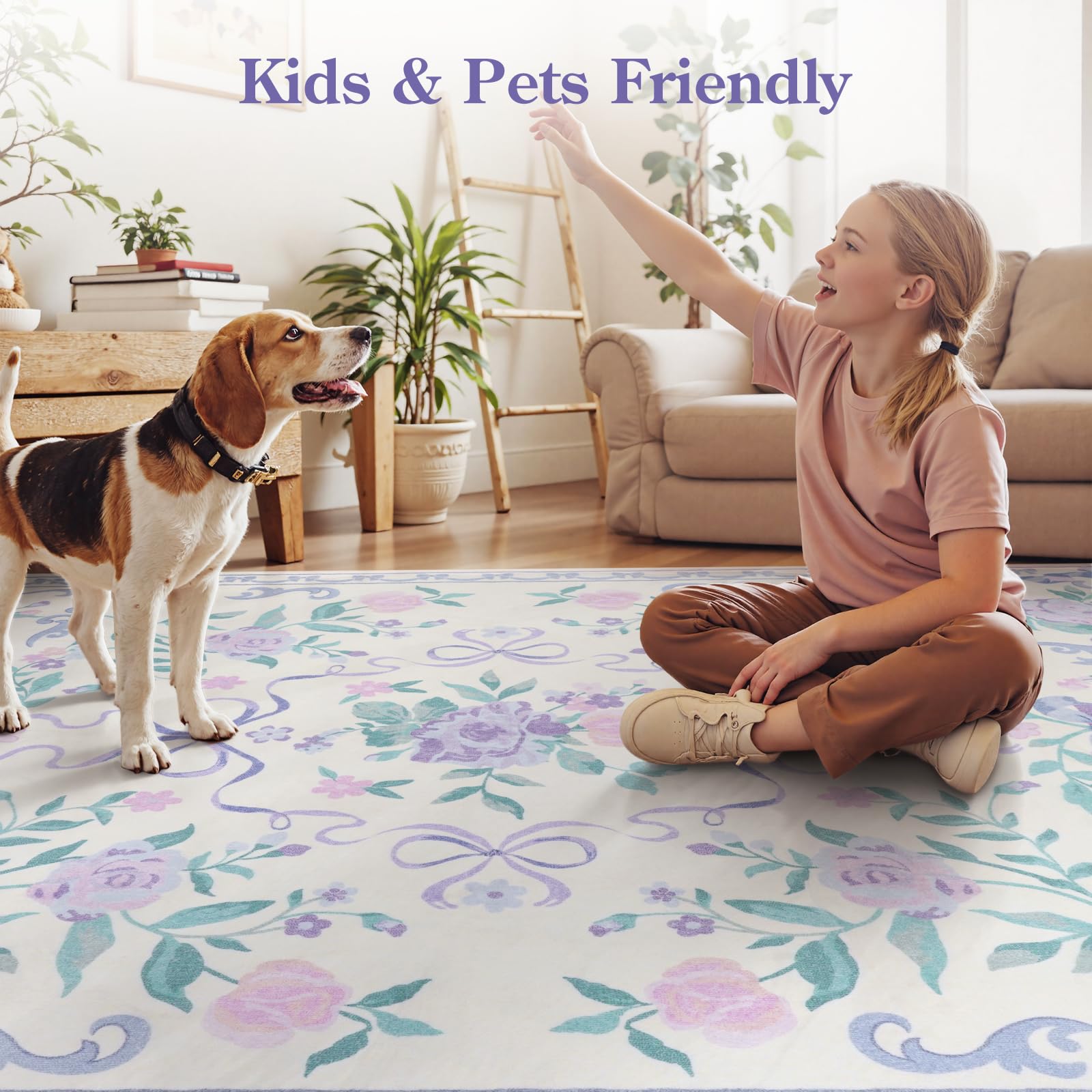 Cozy & Low Pile: Our elegant floral rugs are made of high-density, low-pile faux wool material and have a soft-touch surface that kids and pets will love to lay on, making them pet-friendly, and the low-pile design won't interfere with door opening