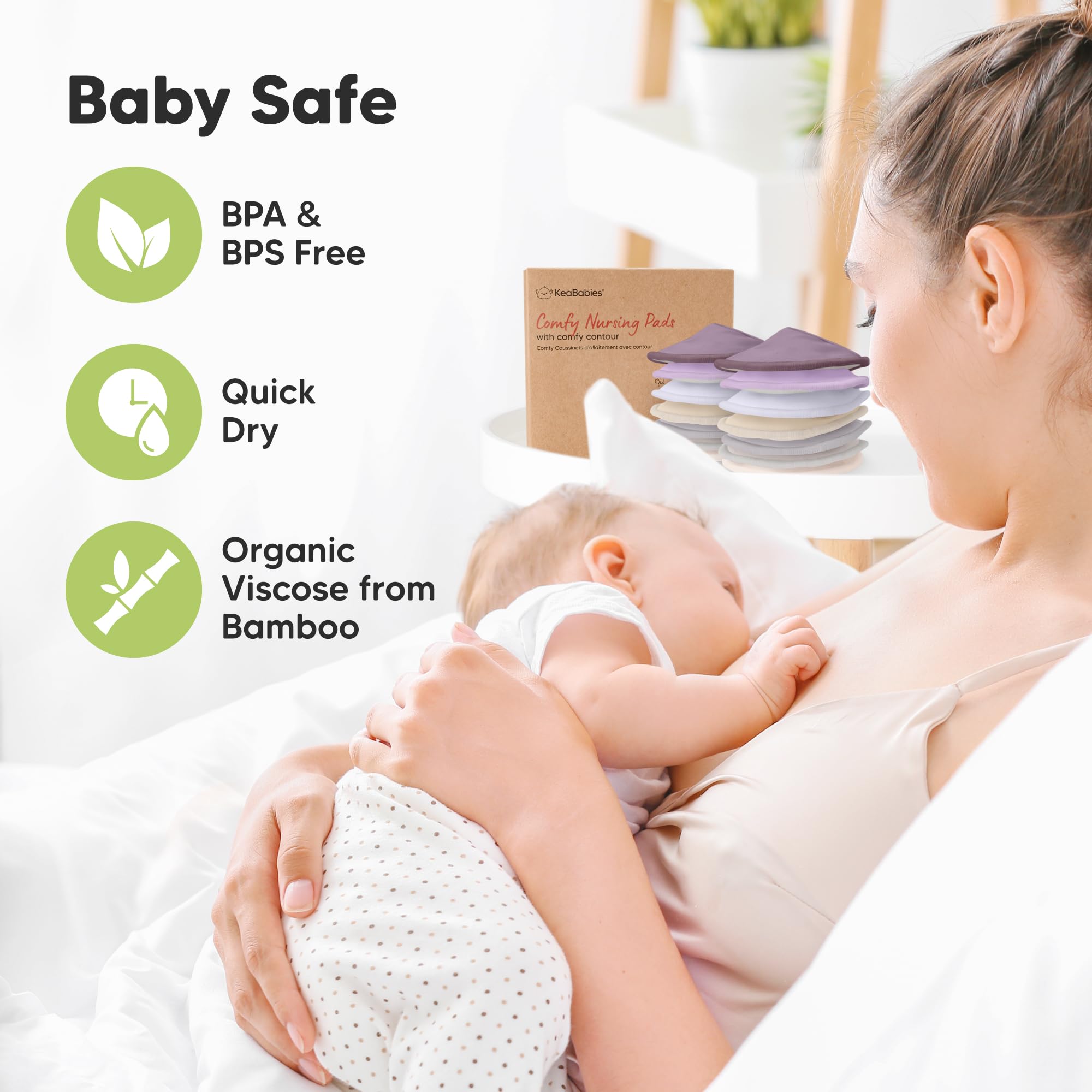 Great For Leakages – Leakage is a thing of the past with our 4-layer nursing pads. KeaBabies Nursing Pads feature three layers of ultra-absorbent viscose derived from bamboo, sealed with a protective waterproof outer layer for extra security on the nipple pads. Tip: If you experience a heavy flow, please replace breast pads every 5-6 hours.