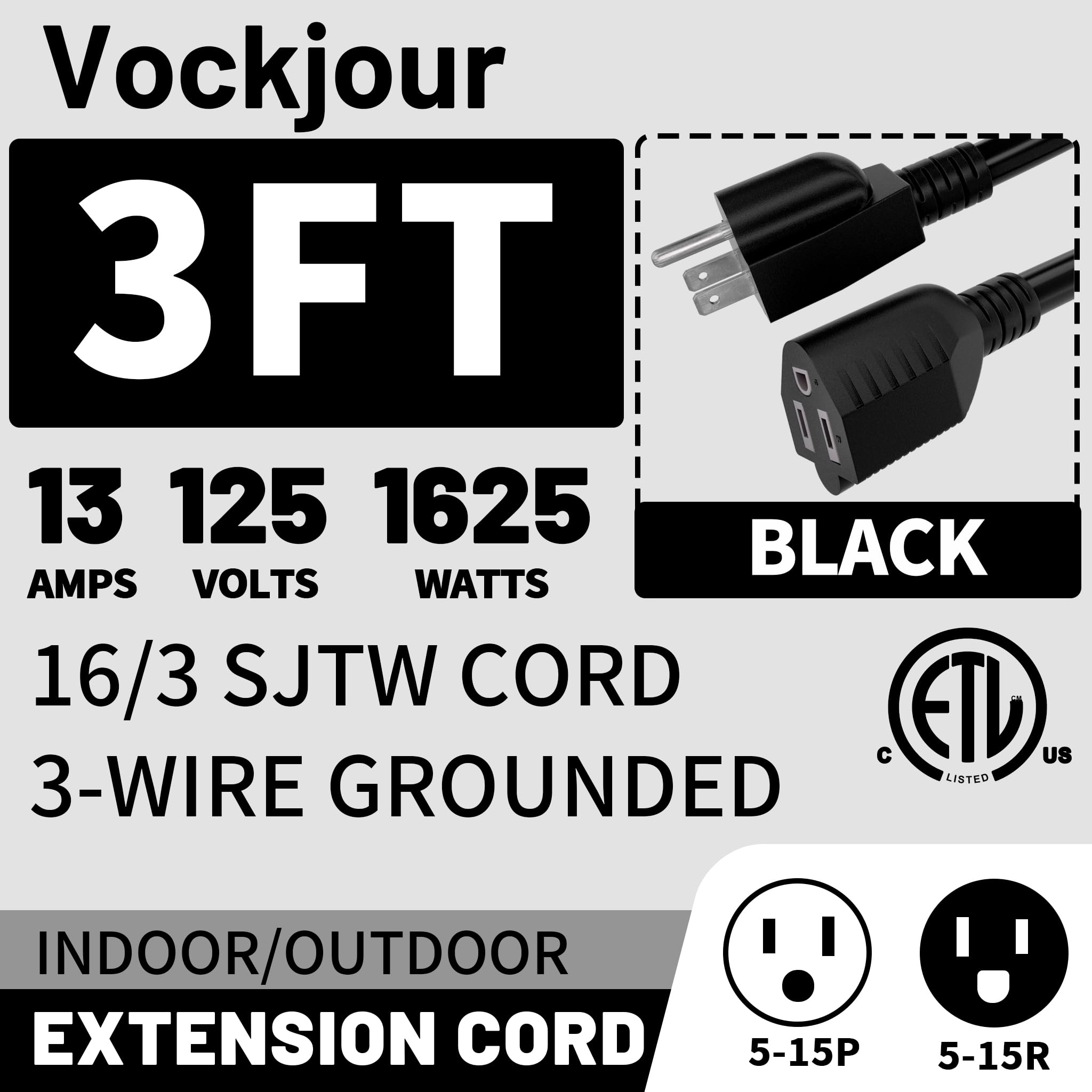 ETL Listed:16 AWG extension cord 3 ft 2 pack, 125 volts, 13 amps, 1625 watts, 5-15P/R,3 prong extension cord Temperature Range -58°F to +158°F; Heavy duty extension cord ETL/cETL Approved