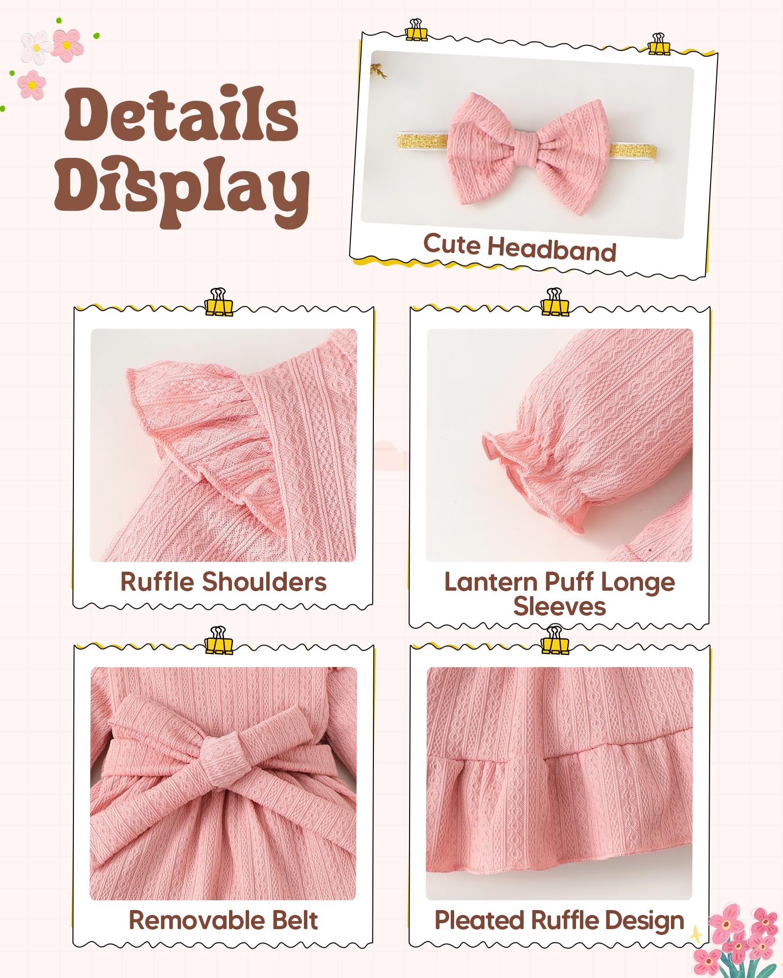Package includes:1*Long Sleeve dress+1*cute headband+1*waist belt