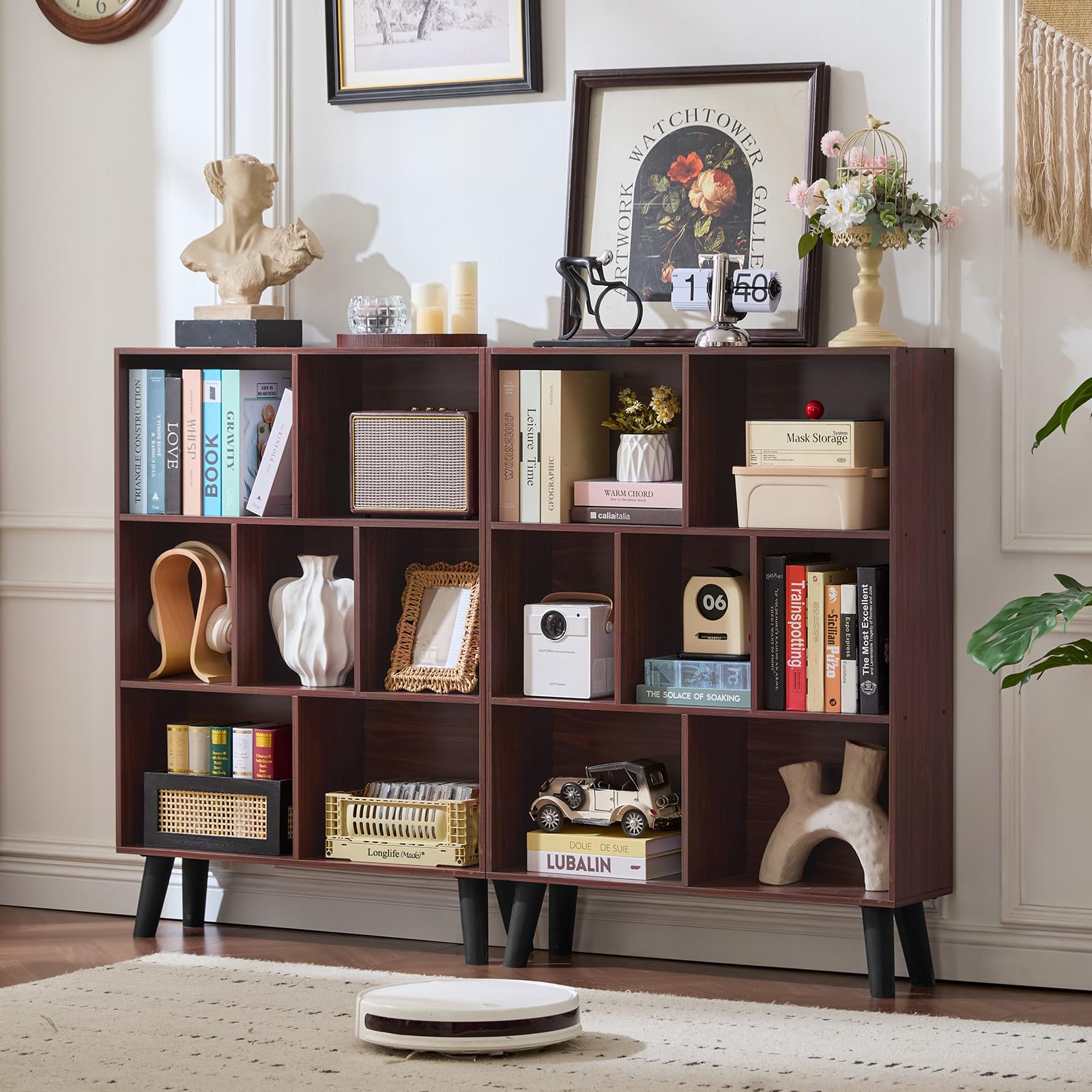 [Categorized Display & Suitable Size] Our bedroom bookshelves have 7 open cubes. You can sort and store different types of books, CDs and various decorations. The simple upright design of these library open shelf bookcases can help you save more space in your bedroom, playroom, nursery and other suitable places. Three shelf bookcase size:31.5"L x 9.45" W x 43.31" H
