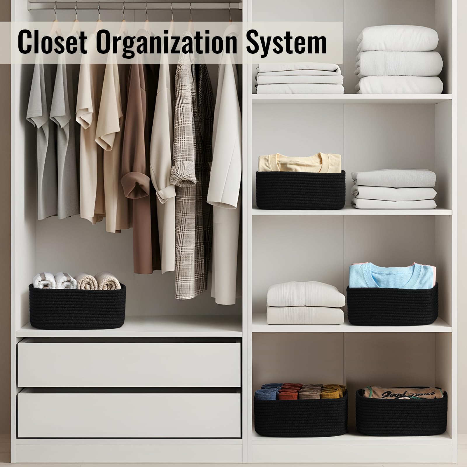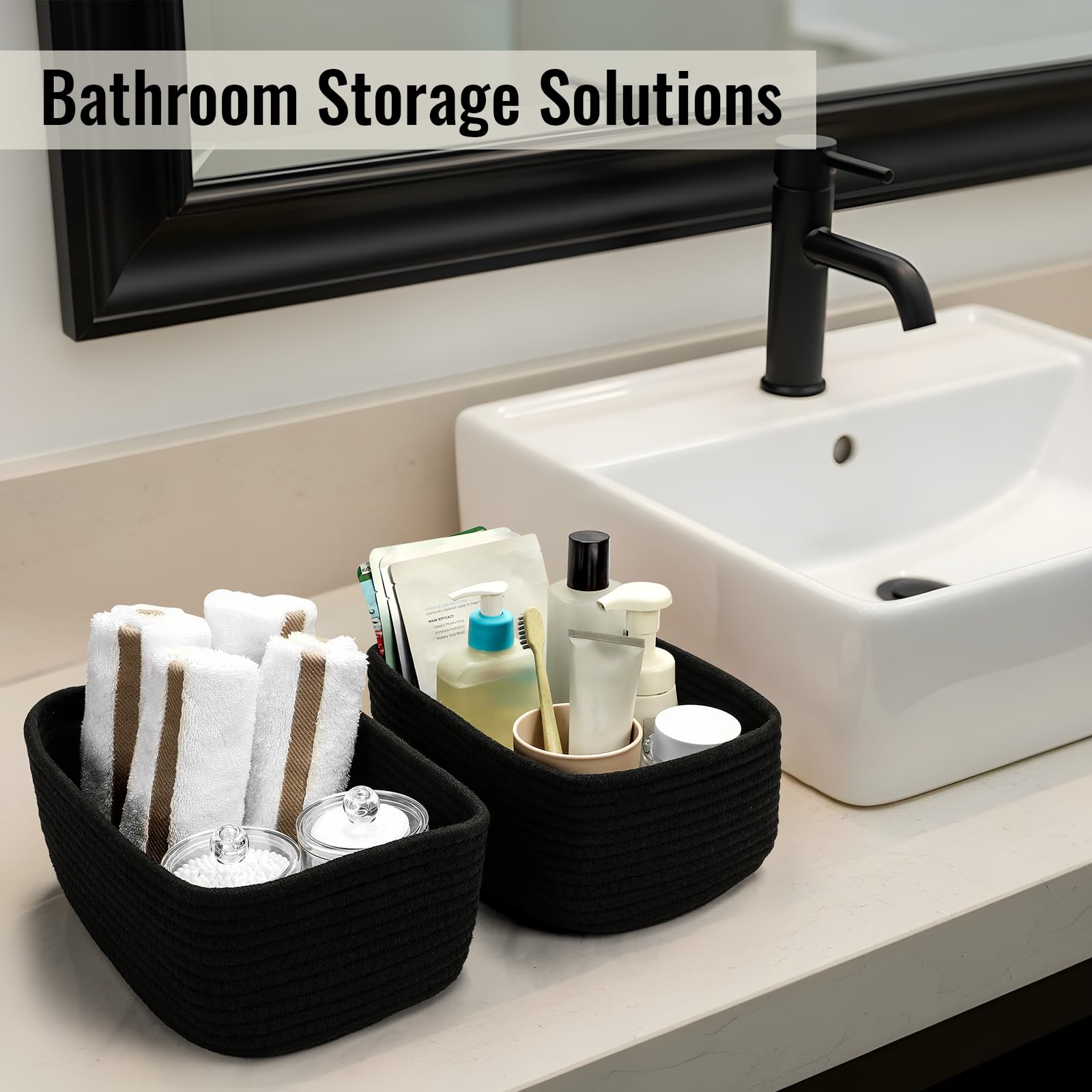 Compact & Versatile Storage – Measuring 11.5"×7.5"×4.7", these small woven baskets are perfect for organizing cosmetics, jewelry, toys, towels, keys, and more. The set of 8 helps declutter desks, shelves, and closets effortlessly, Black