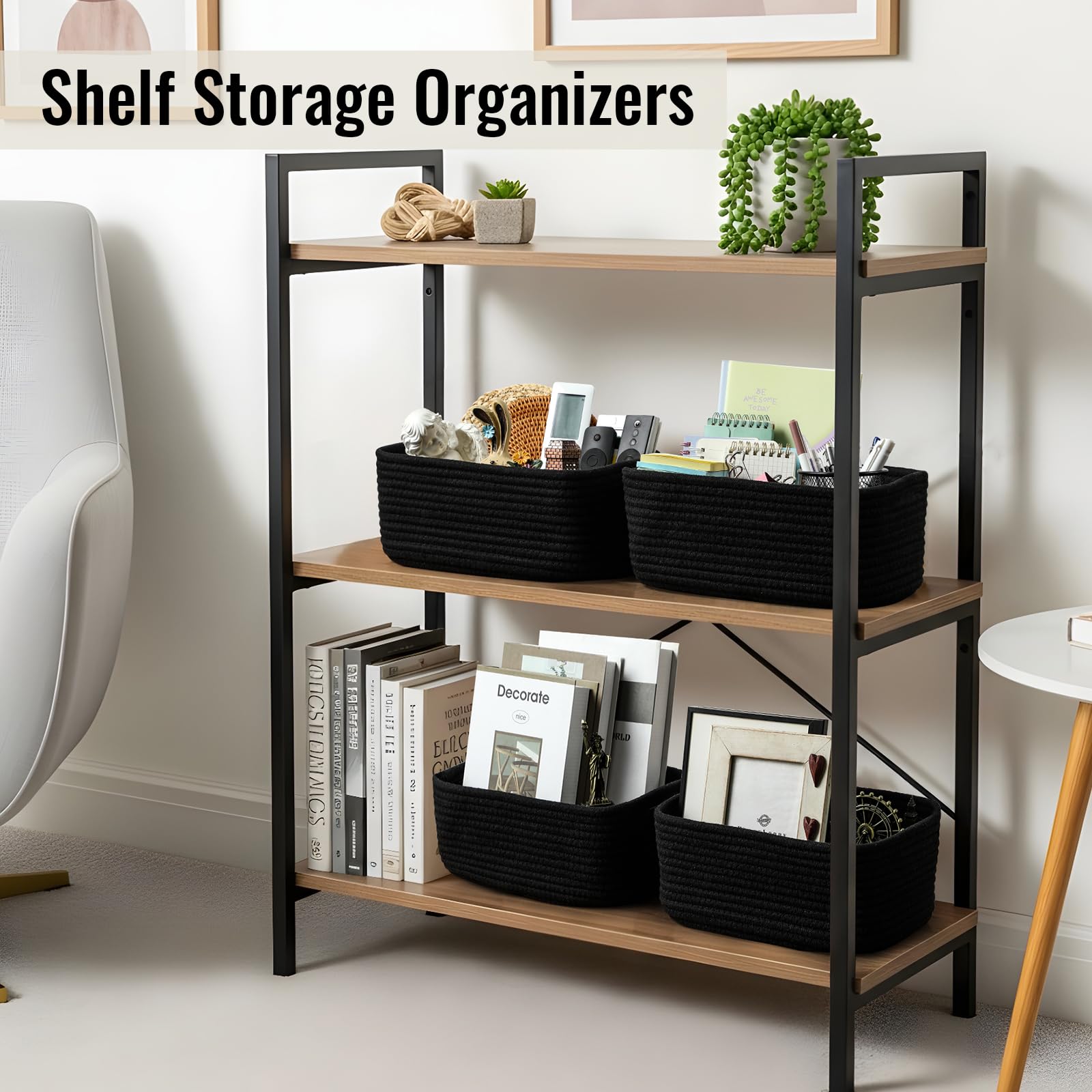8 Pack Small Storage Baskets for Organizing, Woven Rope Bins for Bathroom, Closet, Shelf Organizer, Cute Cube Decorative Box for Towels, Baby Nursery, Toys, Gift Empty Baskets - 11.5"x7.5"x4.7"-Black