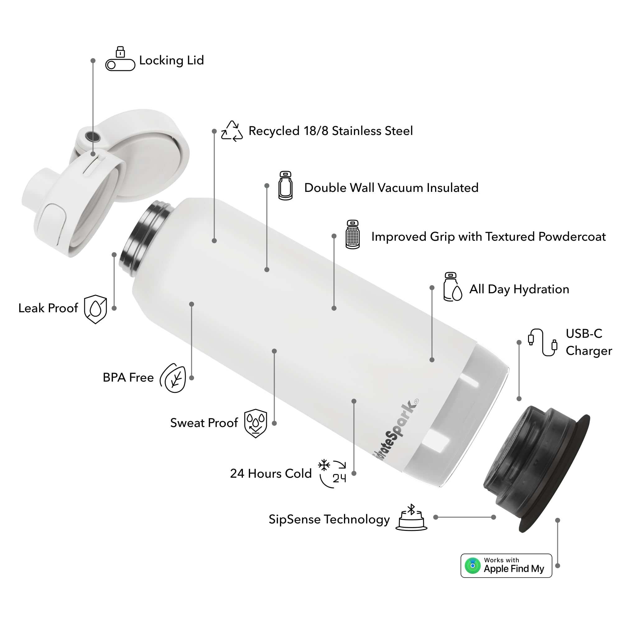 AUTOMATIC HYDRATION TRACKING β SipSense powered sensor uses advanced weight sensing to track every sip and syncs to the app to count toward your daily hydration goal. USB-C rechargeable with up to 21 days of battery life per charge.
