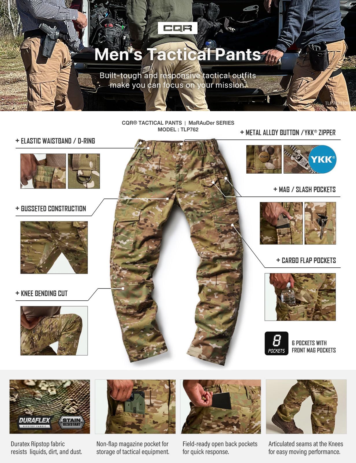 Comfort Fit: Elastic action waistband ensures a secure, adaptive fit; allows unrestricted motion during tactical, hiking, or work activity