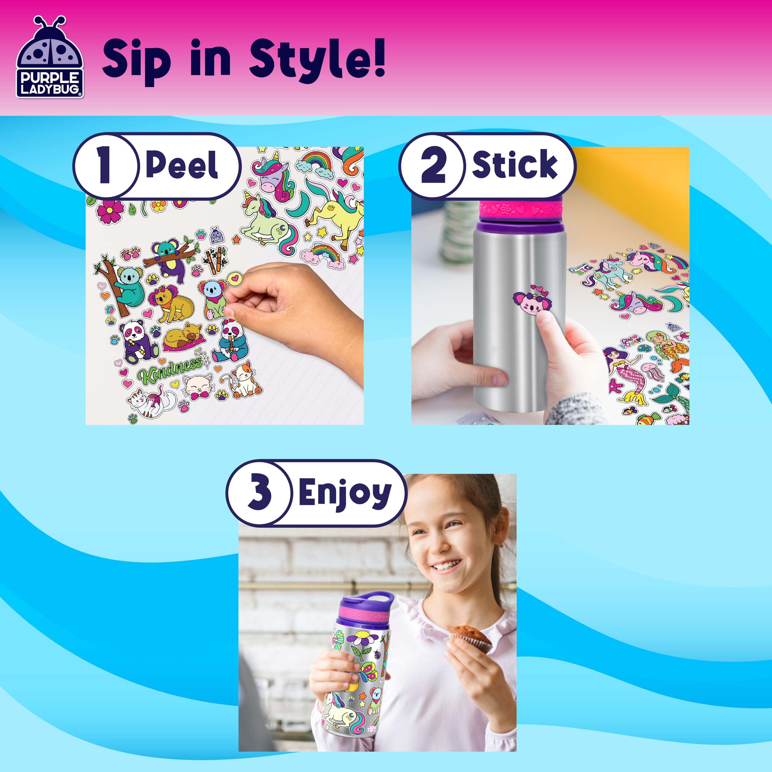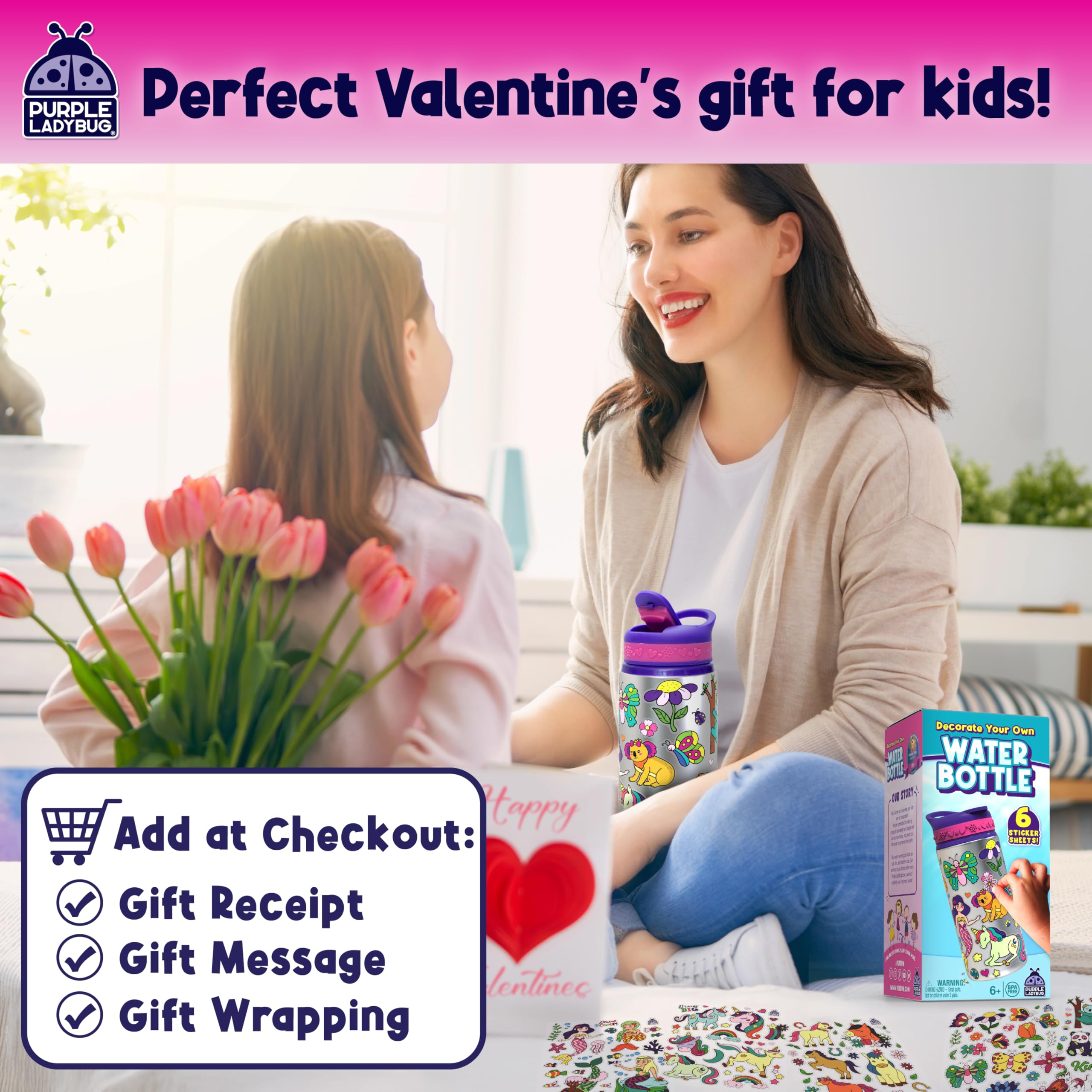 Decorate your own water bottle with cute stickers: Turn an ordinary water bottle into a personalized masterpiece with Purple Ladybug’s Decorate Your Own Water Bottle kit for girls. With vibrant waterproof vinyl stickers and a leak-proof, easy-to-open flip-top lid, this girls water bottle is perfect for keeping kids hydrated while showing off their creativity.