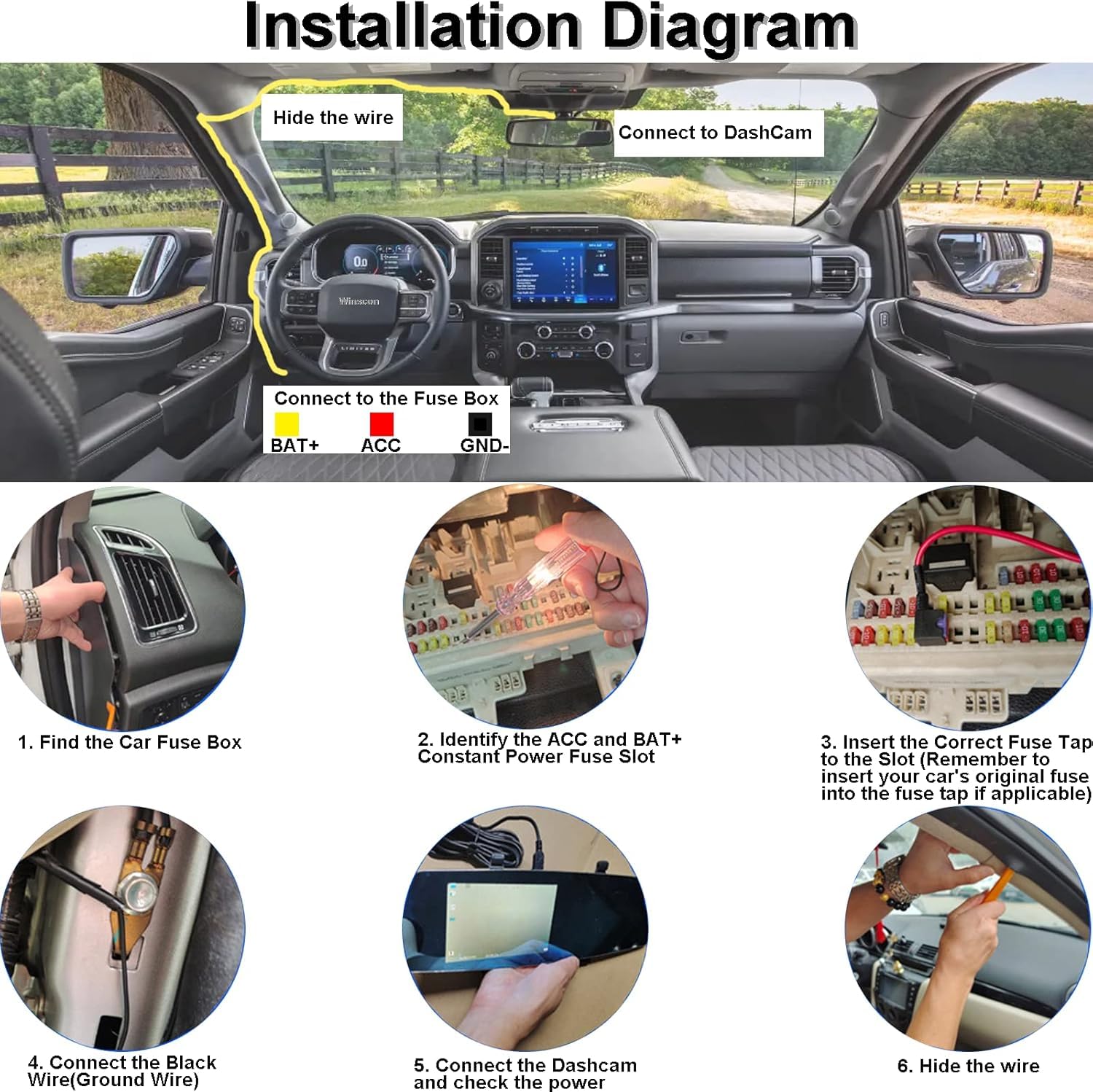 [Installation Note]: It is always recommended to ask for professional assistance when you are not sure how to hardwire the kit with the dashcam, the installation will require some basic electric and wiring knowledge about your vehicle.
