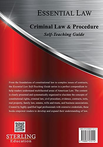 Essential self-teaching guide on criminal law and criminal procedure. The Essential Law Self-Teaching Guide series is a perfect compendium to help readers understand multifaceted areas of American Law.