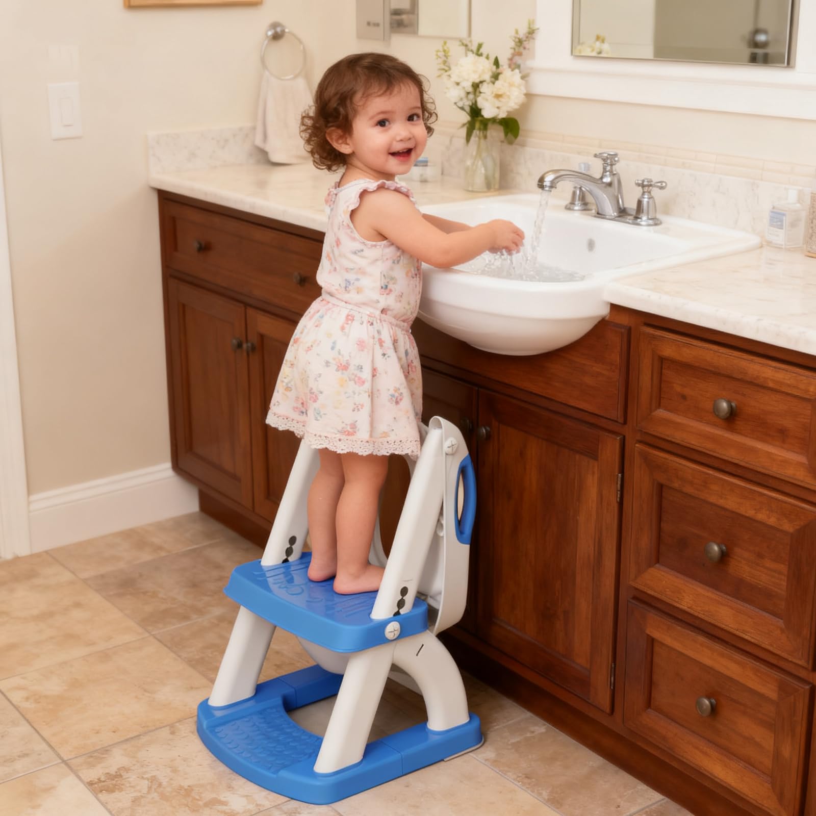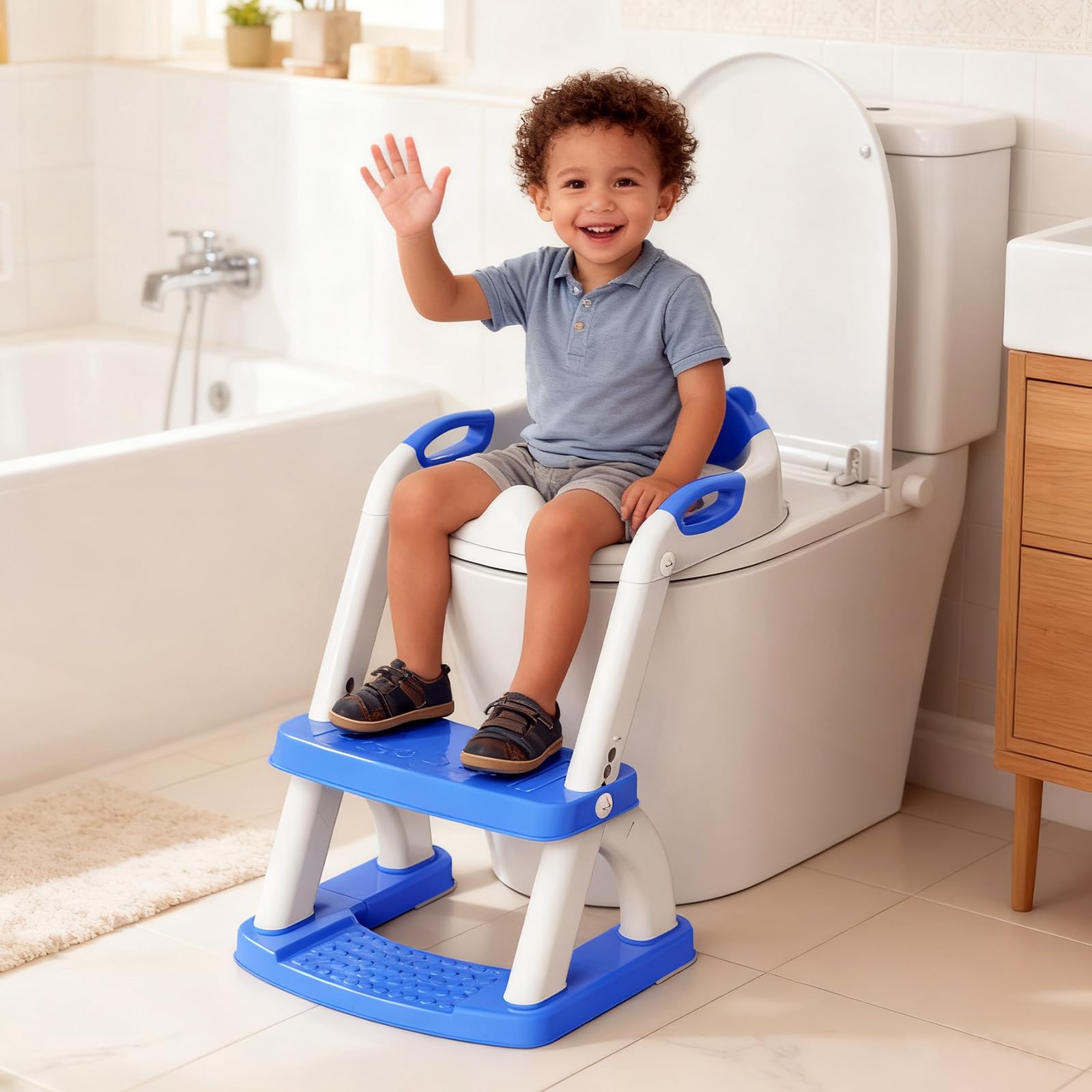 2-in-1 Multi-Functional Helper – More than a potty trainer—it’s also a sturdy step stool! Kids can use it to reach the sink, wash hands, or grab books off a shelf. Lightweight, foldable, and compact, it grows with your child and stores easily between uses