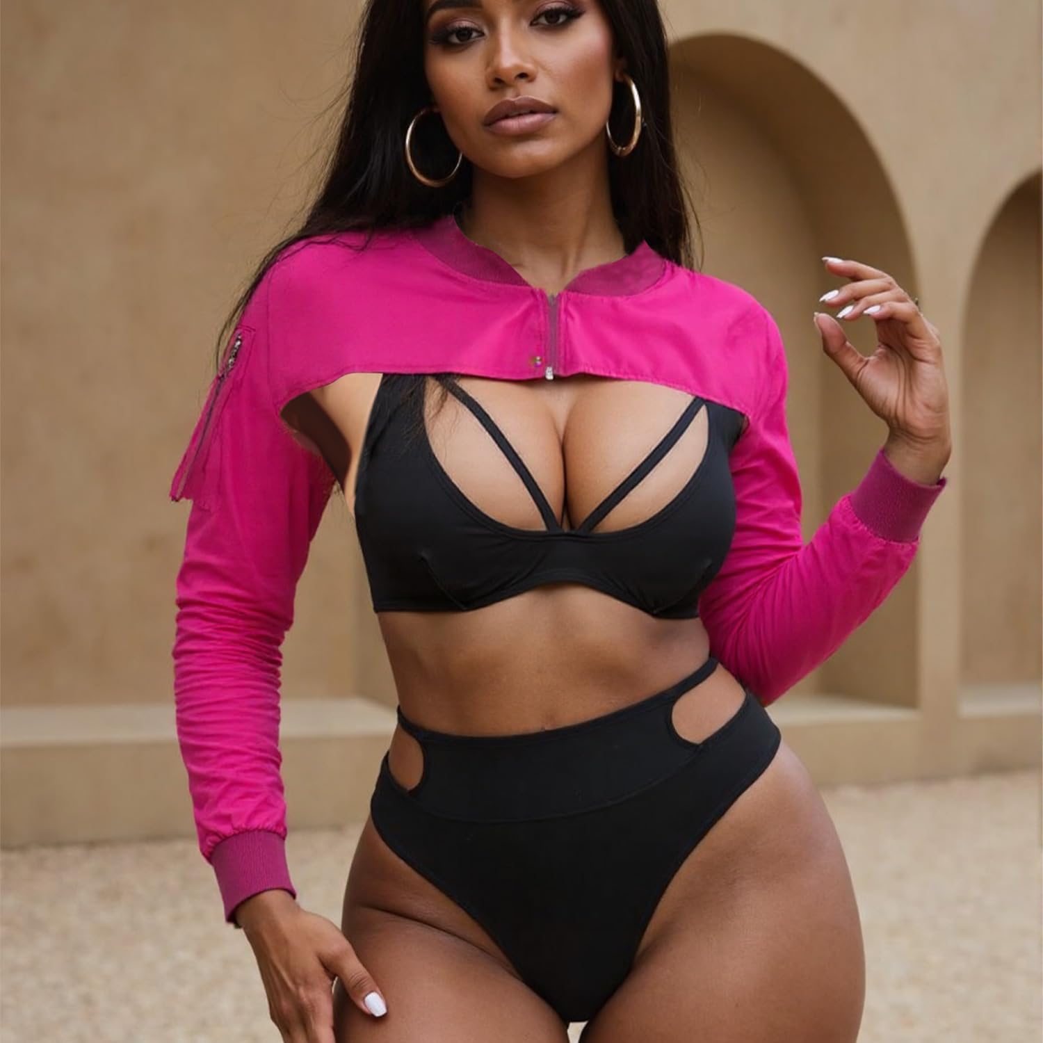 Feature: Zip Up, Pocket At The Side, Reflective Rave Outfit, Cropped Long Sleeve Tops, Loose Fit Alllow Easy Movement.