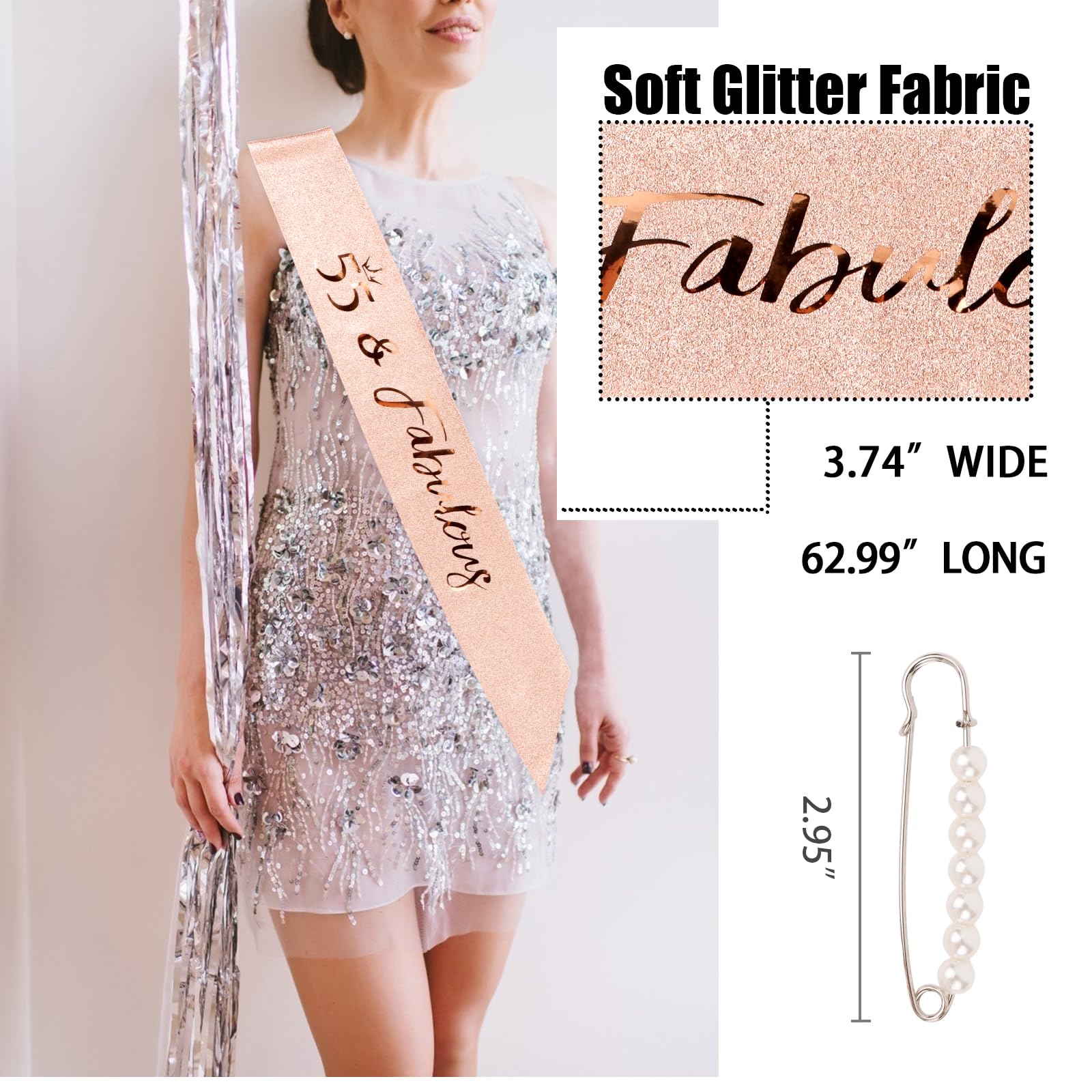 55th Birthday Sash. Birthday sash made from soft glitter fabric using hot pressed stamping foil will compliment any outfit and durable enough to last day into night. Rose gold glitter sash + rose gold lettering looks great on photos...It's perfect for those who obsesses over the perfect shot for Instagram.