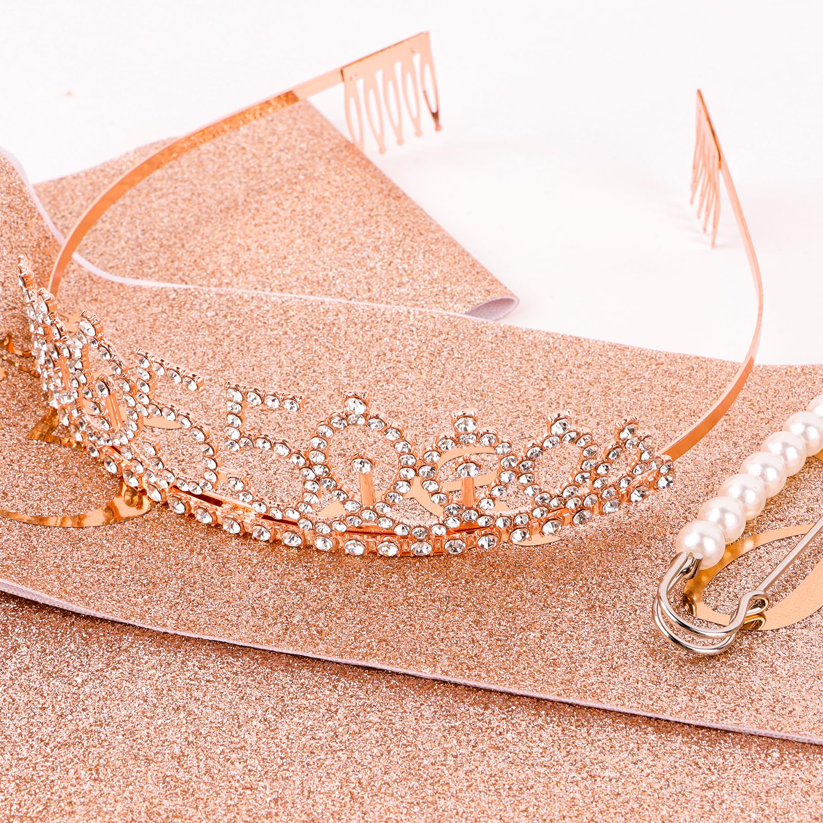 One Size Fit All - Birthday sash - Length: 61” (155cm), Width: 3.7” (9.5cm); Rhinestone tiara are adjustable as well comes with comb design that can holds and stable and comfortable on top of the hair. Birthday sash can be fixed and adjusted in length with pearl pins.