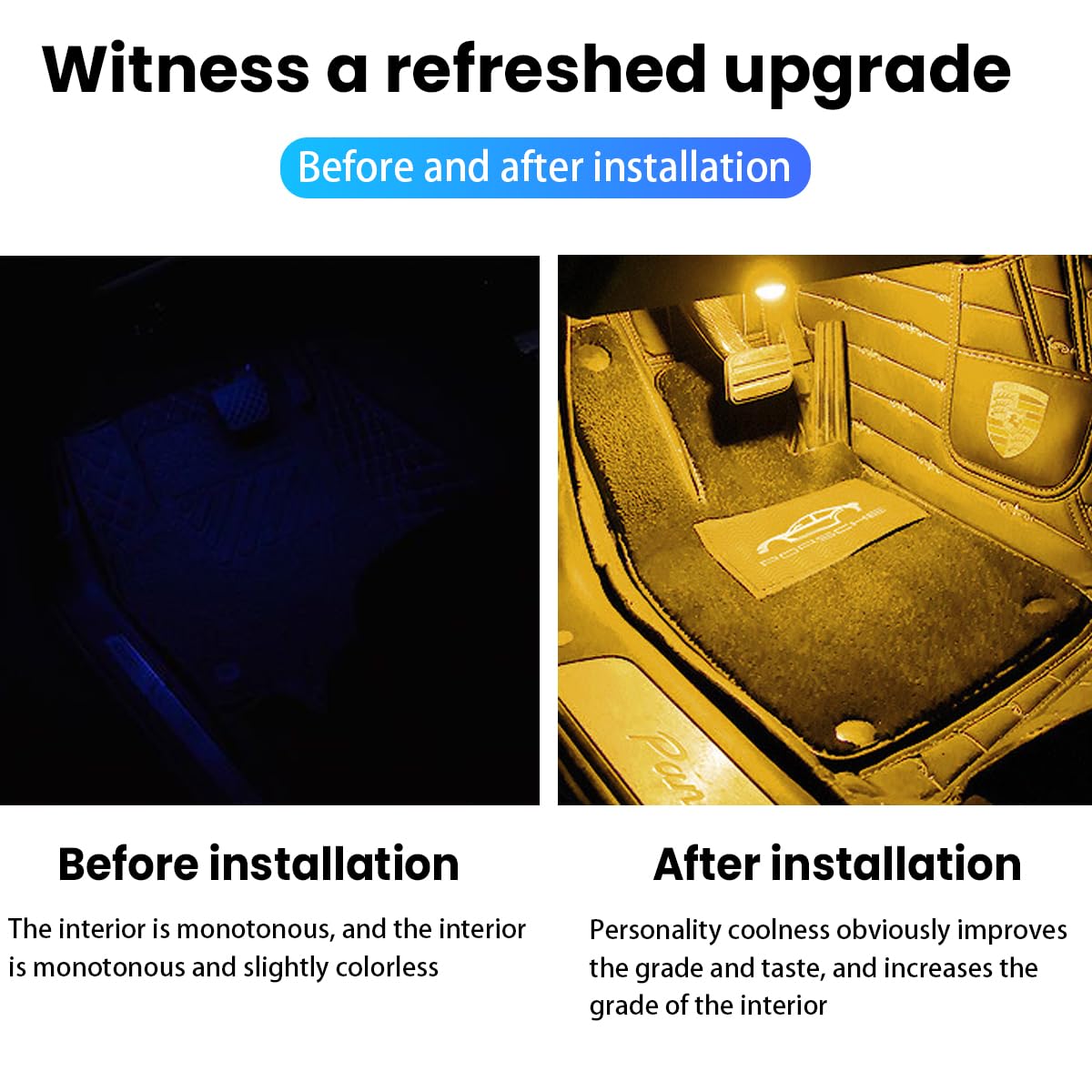 【Easy to Install】: Plug it directly into the USB port, power it on and it will light up. There are 4 bulbs, which are installed at the main driver's footrest, passenger's footrest, left rear footrest, and right rear footrest. Just tear off the protective film and stick it on your car.