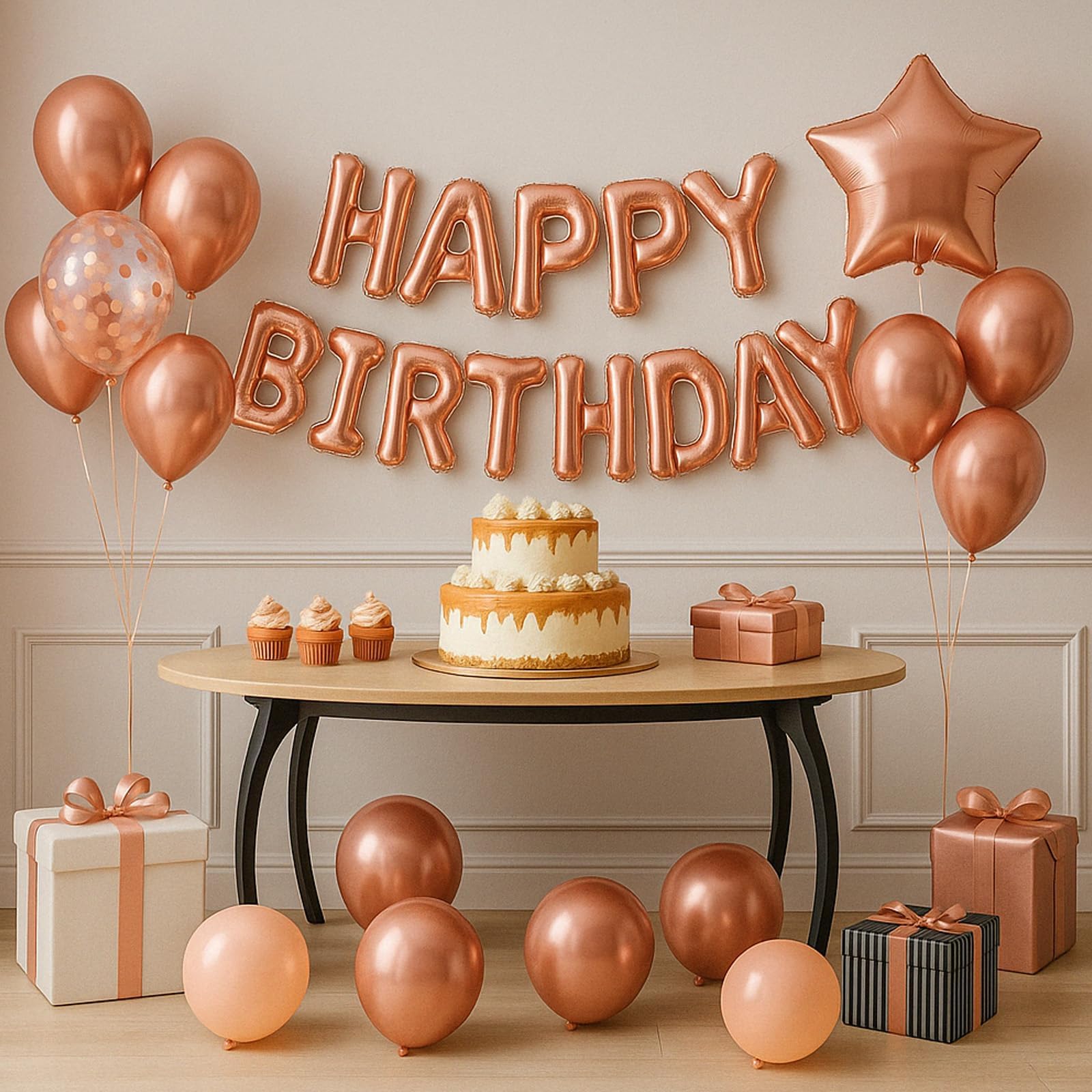 【Variety of Color Choices】Rose Gold Happy Birthday Decorations include different colors of "HAPPY BIRTHDAY" foil balloons and multiple sizes and colors of latex balloons, you can easily mix and match to create a personalized party atmosphere. Whether you're going for a cute, vibrant vibe or a soft, elegant look, there’s a party balloon combination for your celebration.