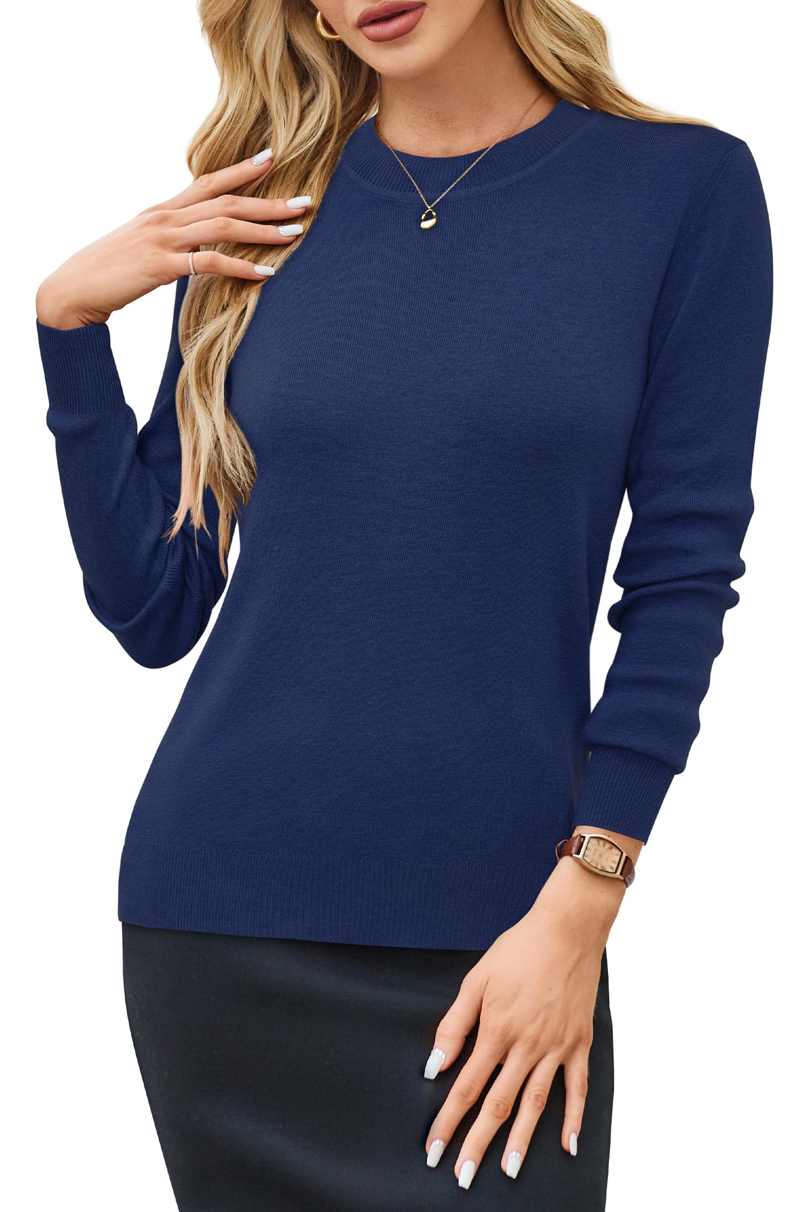 Features: Women's Fall Tops/ Long Sleeve/ Crew Neck/ Loose Fit/ Business/ Winter Layering/ Elasticated Hem/ Solid Color/ Pullover Sweater