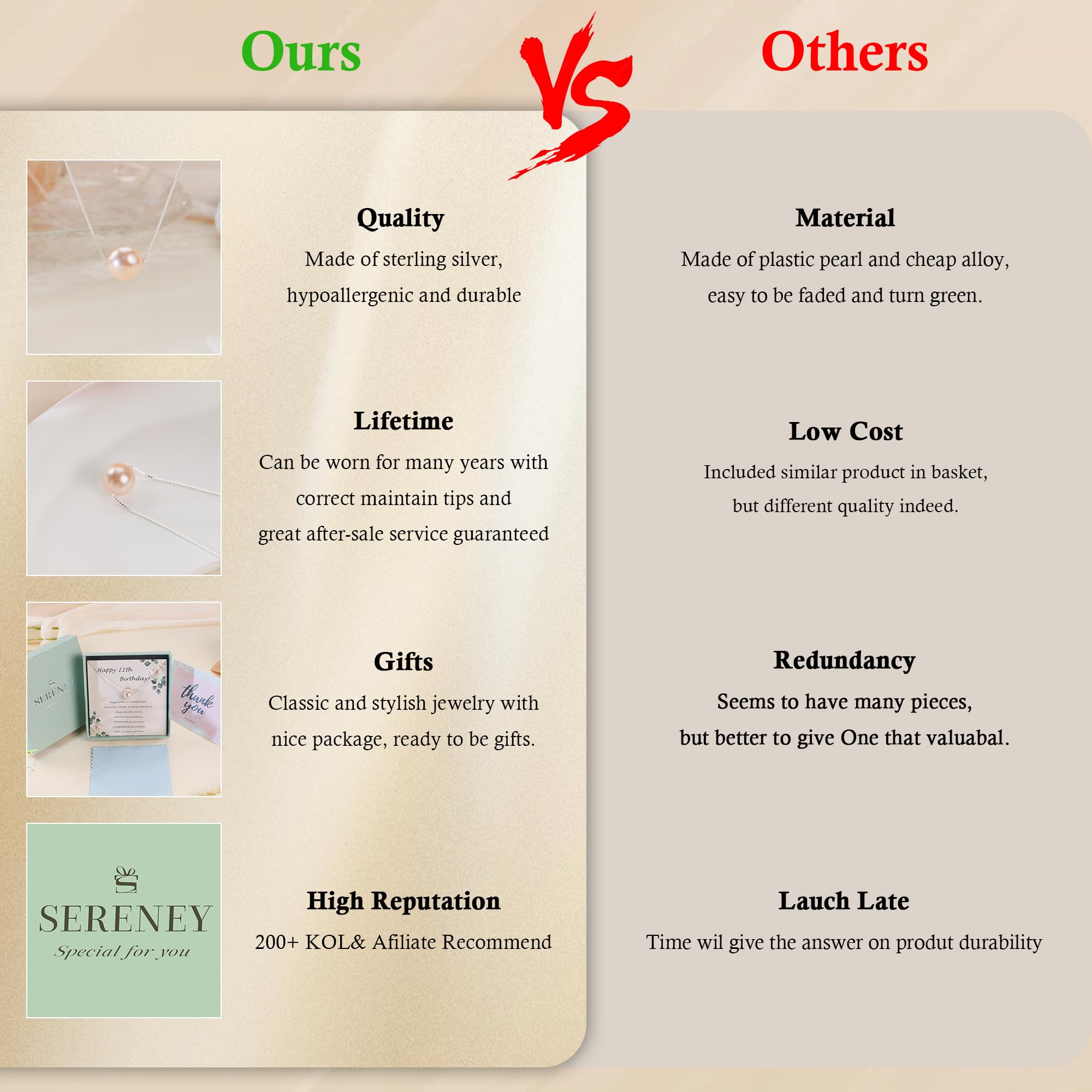 Description Sereney Birthday Gifts for Women, Sterling Silver Pearl Necklace as 7 9 10 13 16 18 21 30 40 50 60 Year Old Birthday Gifts, Single Pearl Necklace as Galentines Day Gifts for Friends