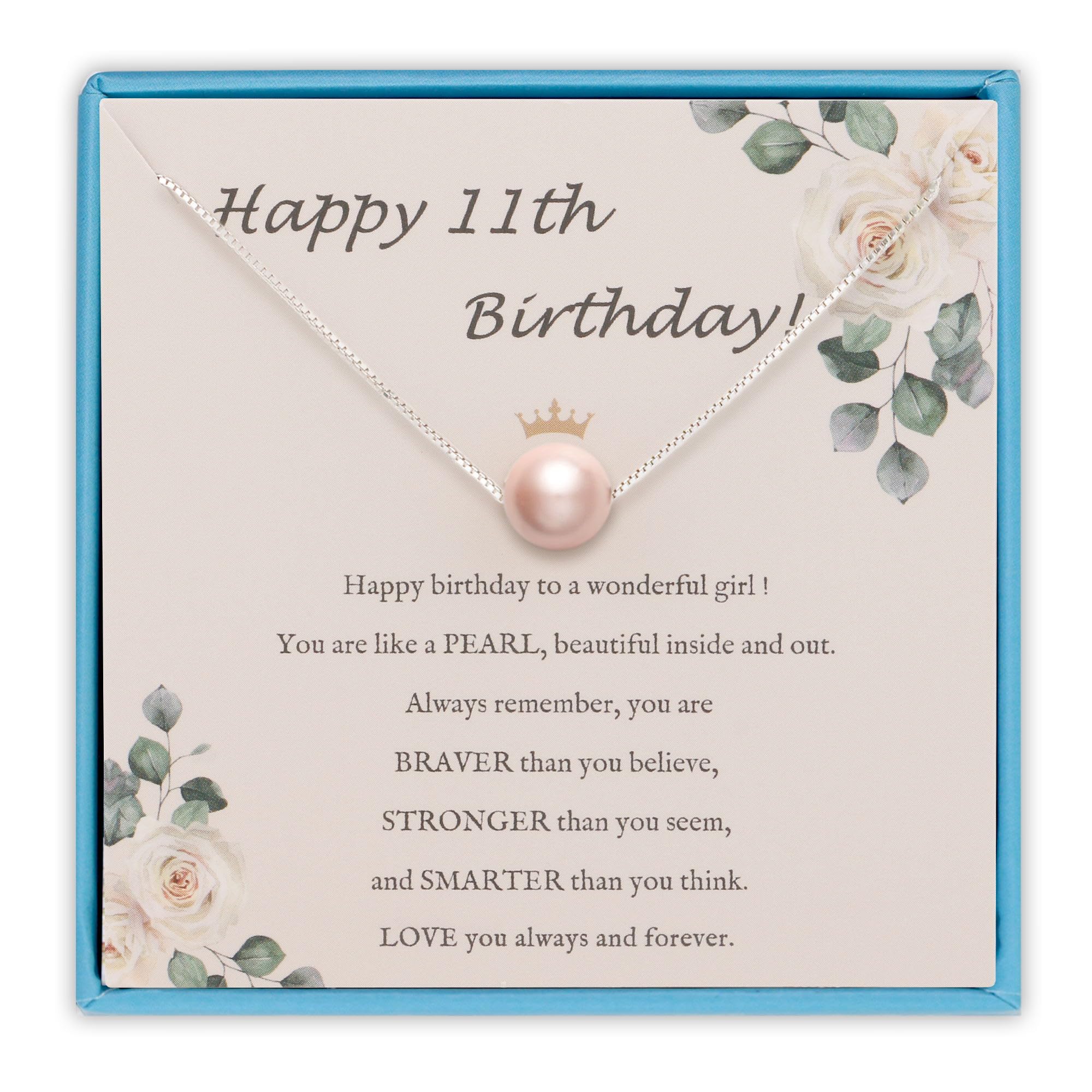 11 Birthday Decorations for Girls: 11th birthday is a brilliant starting point !Celebrate your daughter/granddaughter/niece with this pearl necklace to convey your deepest love and wishes for her to shine with Confidence and elegance, just like a precious pearl, throughout her exciting years ahead.As girls 11 year old gift ideas