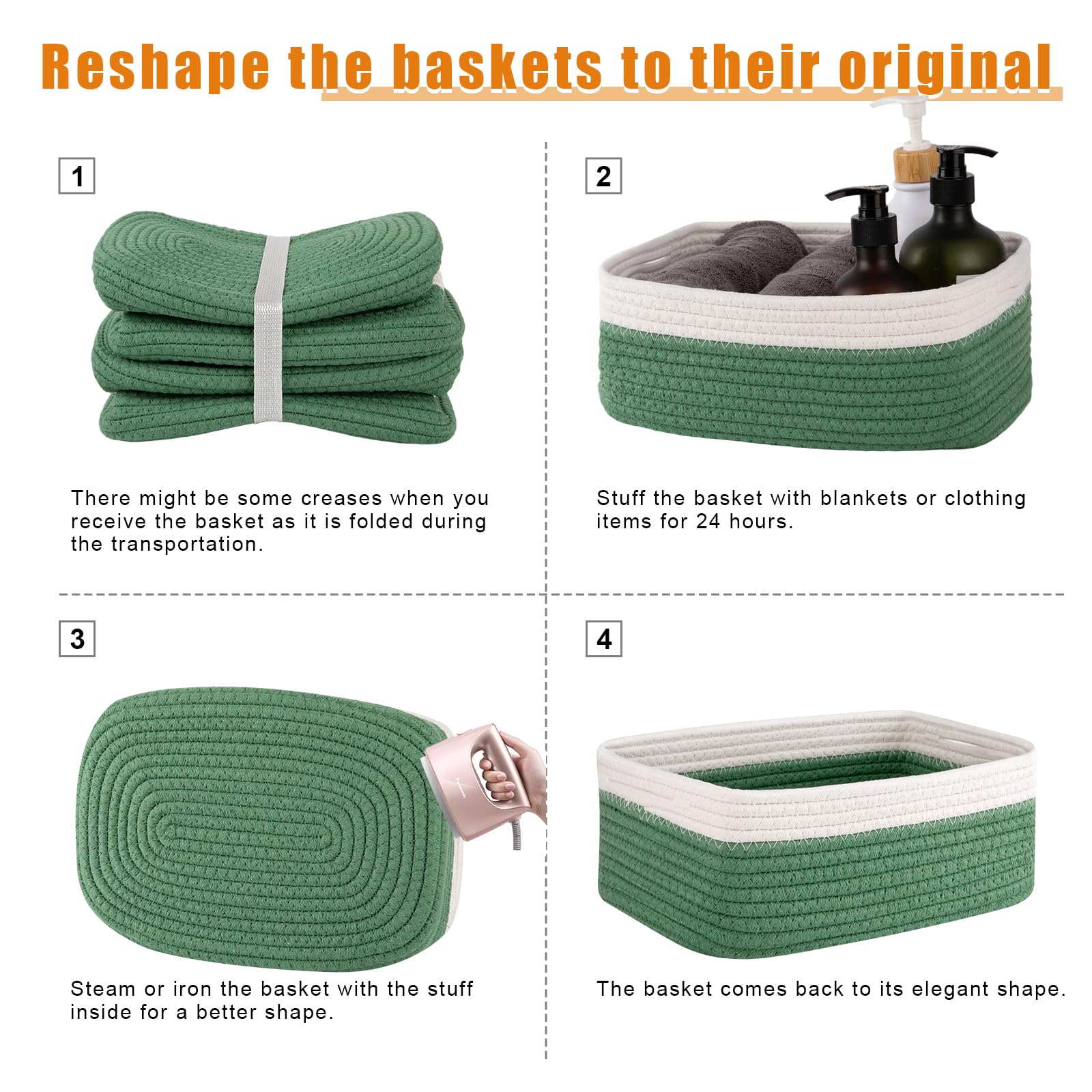 Note: OIAHOMY organizer baskets are folded for shipping. It will turn back to its elegant shape quickly by filling it with towels or blankets, and ironing is a great idea to regain the creases. Also, you can fold it into a flat shape for easy storage when not in use
