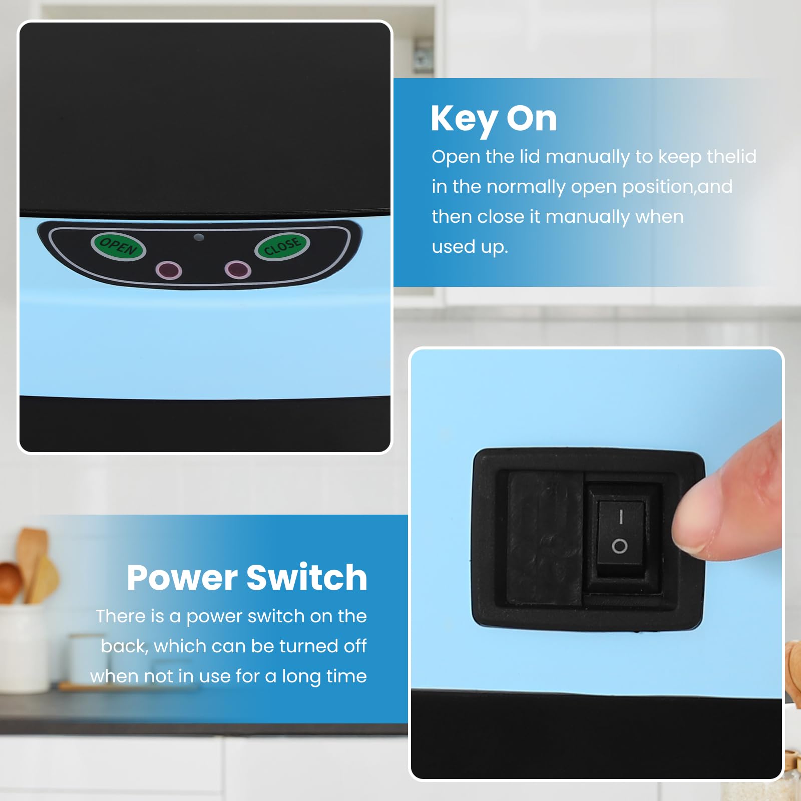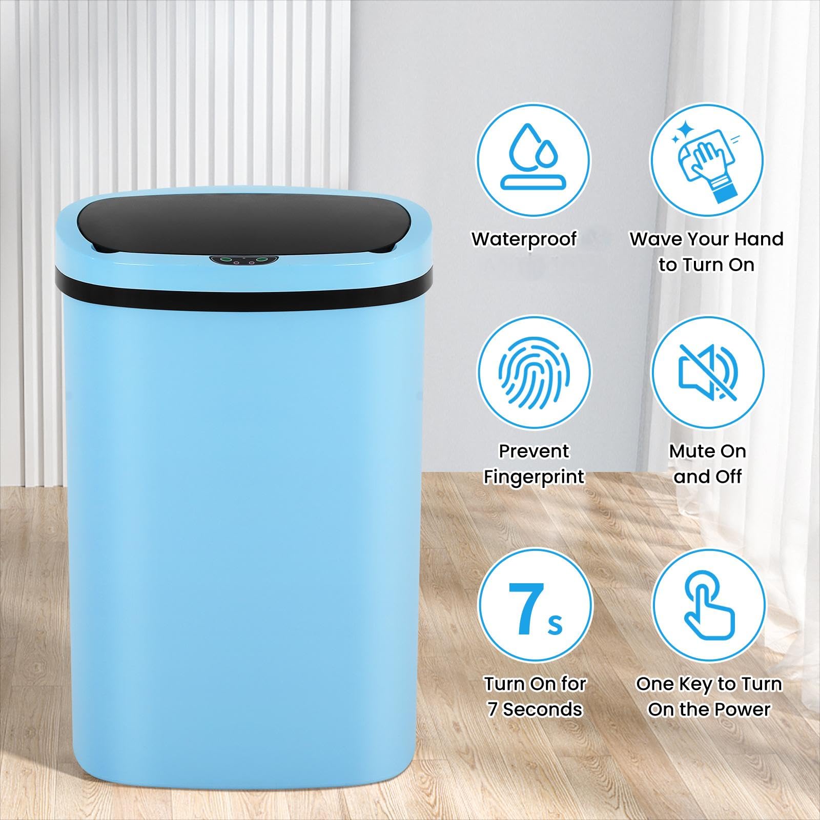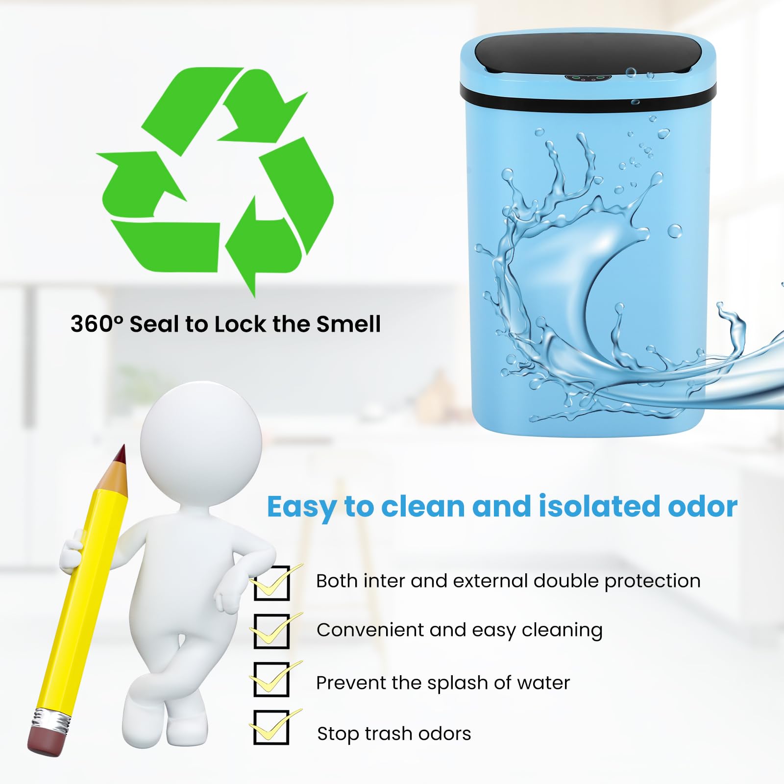 -- No Touch, More Hygienic: -- This automatic trash can is designed to be very user-friendly, you can throw the trash into the can without touching it, very clean and hygienic. This garbage can has an infrared sensor. You can trigger the sensor to open the lid by the proximity range of 6" of the sensor. The response time is about 0.8S. When the lid is opened, it will open for 7S and then close