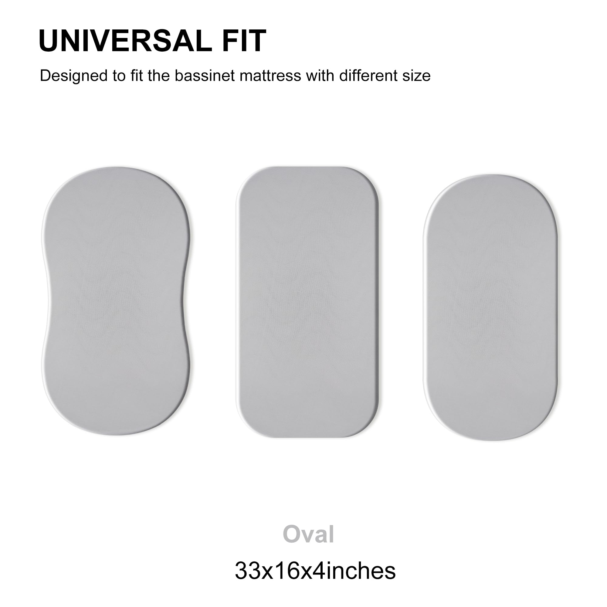 Classic Universal Size: This Bassinet Mattress Sheets have achieve a balance between elasticity and tightness. Stretches and fits oval, round, rectangular, hourglass shaped mattress up to 2.5”. No risk of mattress binding or damage.