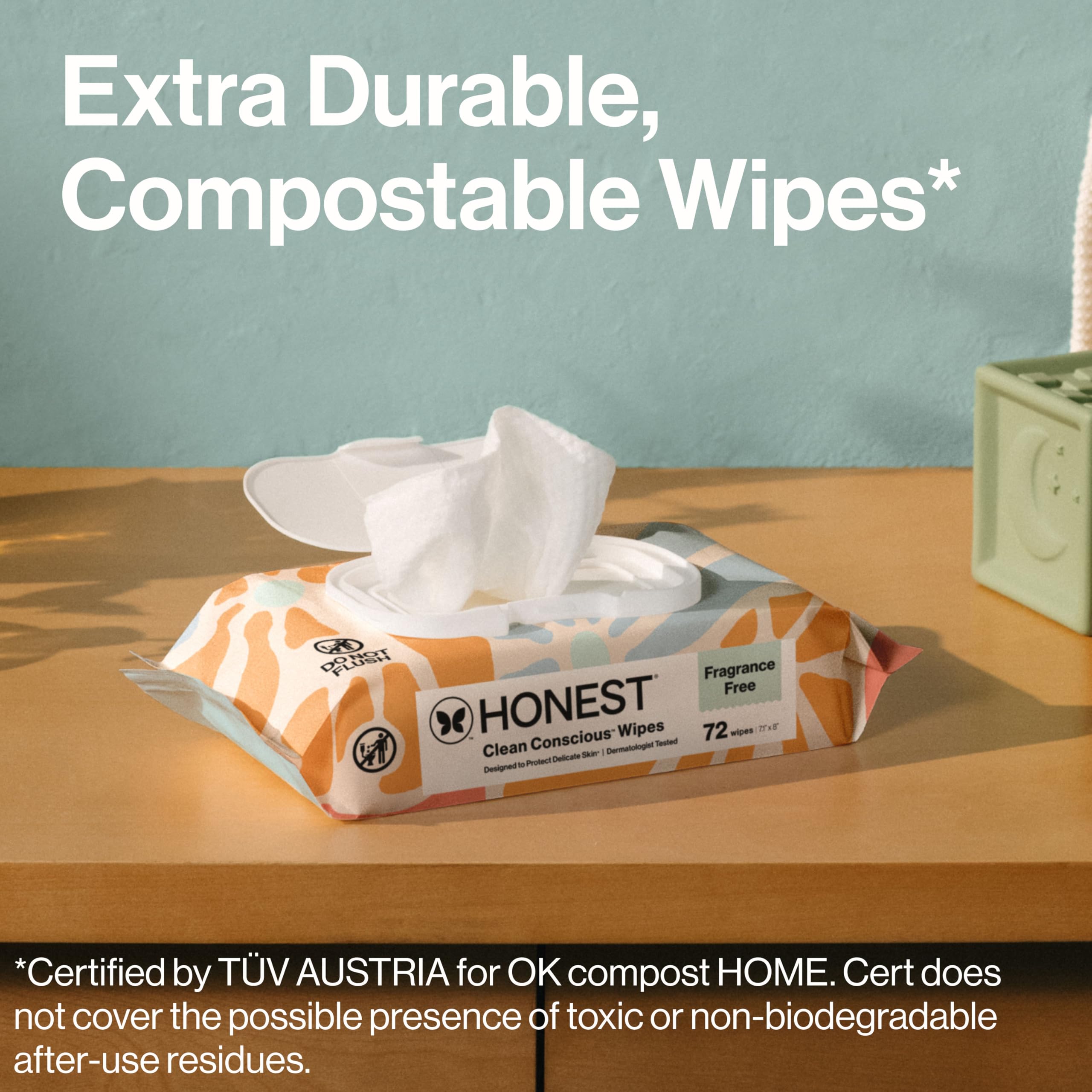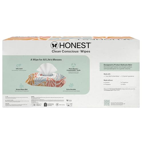 Clean up all of life’s messes with our compostable plant-based baby wipes, made with over 99% water and gentle on sensitive skin. From diaper change duty and messy fingers to sticky counters and gunked-up toys — our ultra-durable, extra thick wipes get the job done! These hypoallergenic plant-based wipes are dermatologist-tested and are made with only 7 transparent ingredients that are toxicologist-audited, making them safe + gentle for baby and the whole family. Wipes made without plastic, fragrances, parabens, and chlorine processing – containing everything you need and nothing you don’t. Now Compostable! Honest Baby Wipes disintegrate in 8 weeks.** For municipal: Always check for the availability and acceptance of municipal/institutional composting facilities as they may be limited in your area. For home: Do not compost if wipes are used to clean non-compostable items like human/animal waste or mixed with cleaning soaps/sprays. Generally, wipes shouldn't be more than 10% of your compost heap. **Following Modified ISO 20200 standards to assess disintegration under home composting conditions.